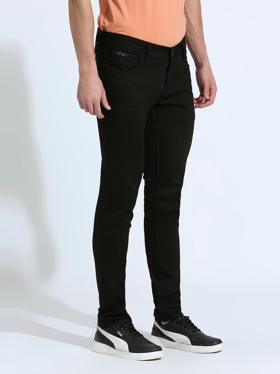 Stretchable Minimal X Jet Black Slim Fit Jeans