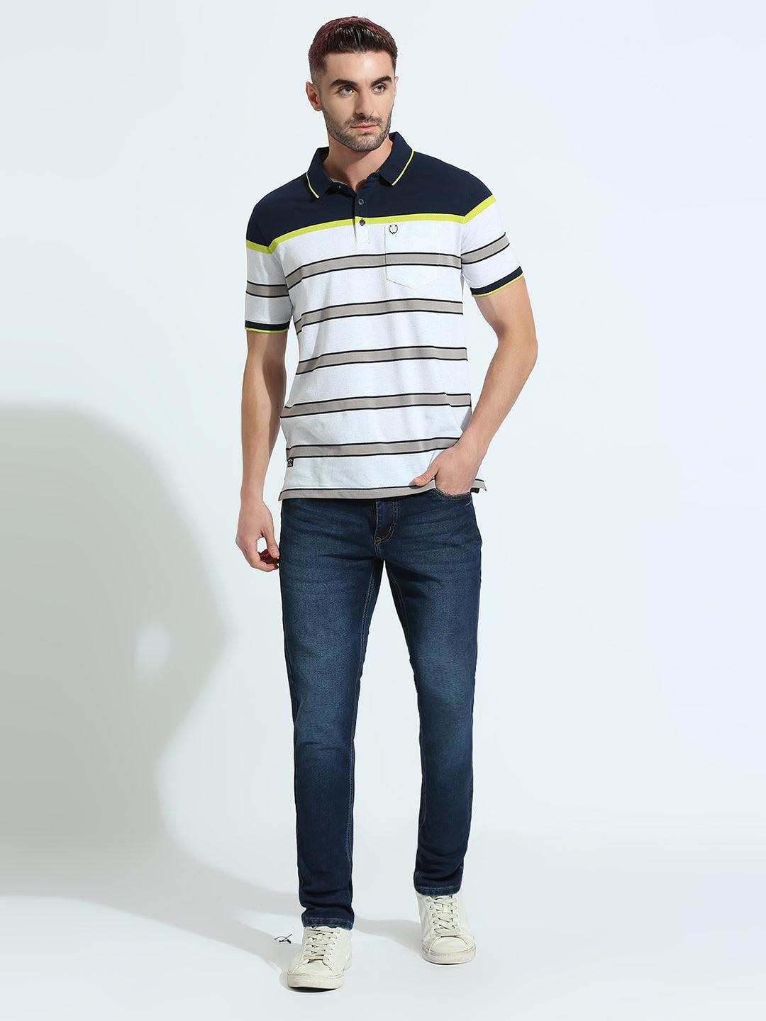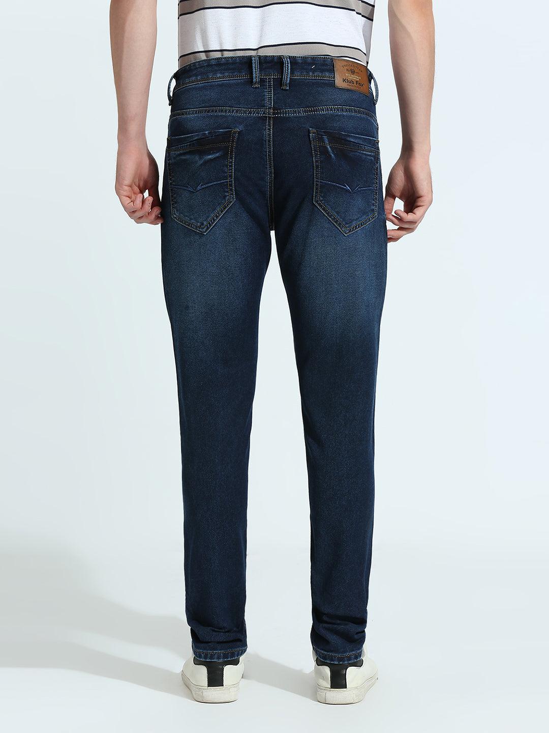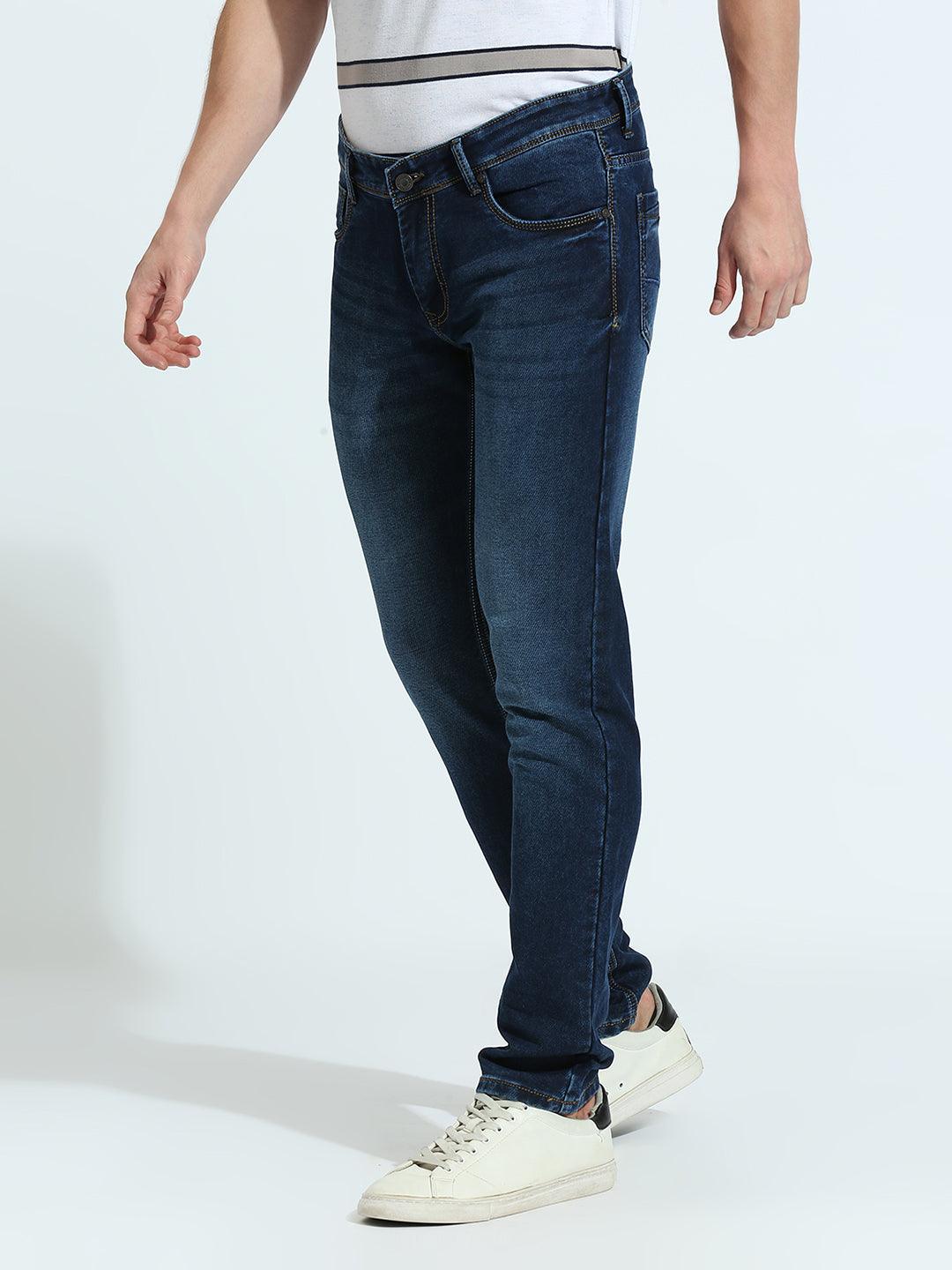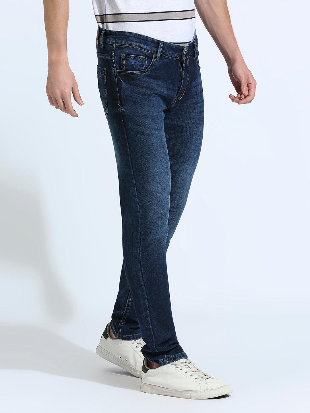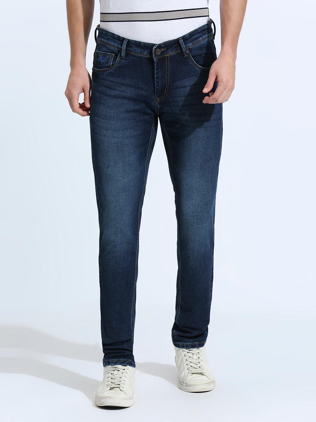 Stretchable Admiral Blue Cloud Wash Slim Fit Jeans