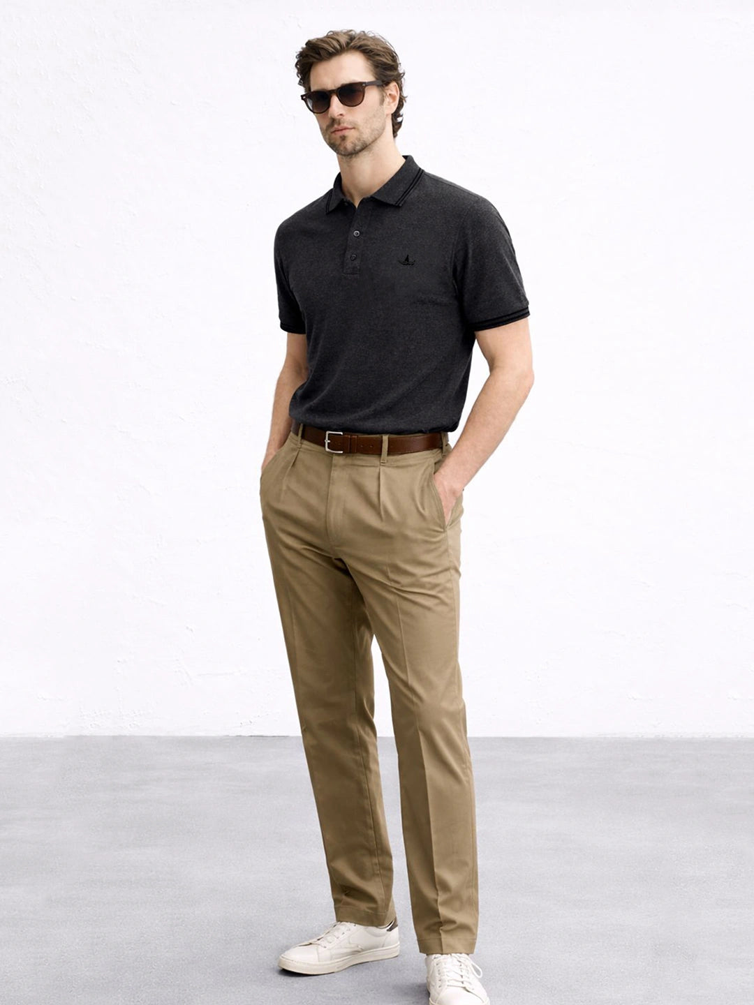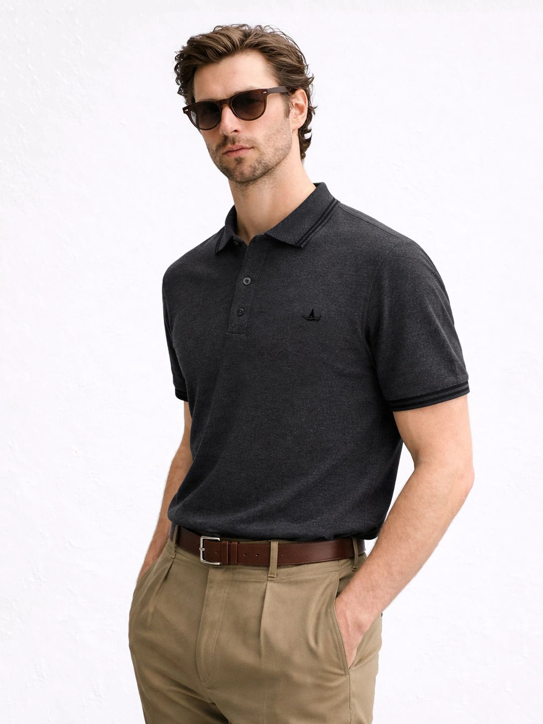 Anthra Melange Selfmade Solid Polo T-Shirt