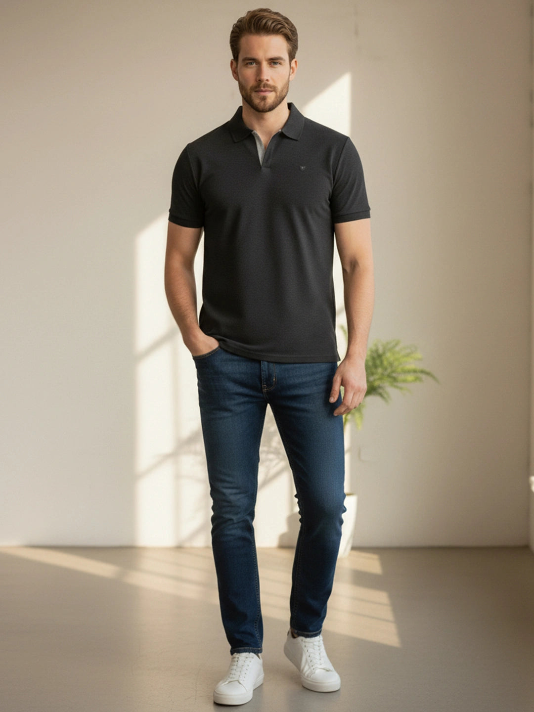 KF Anthra Melange Solid Polo Regular Fit T-Shirt