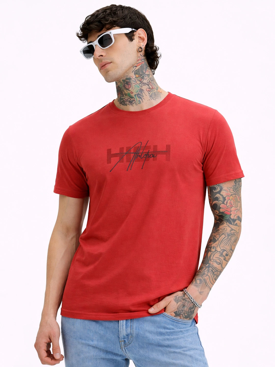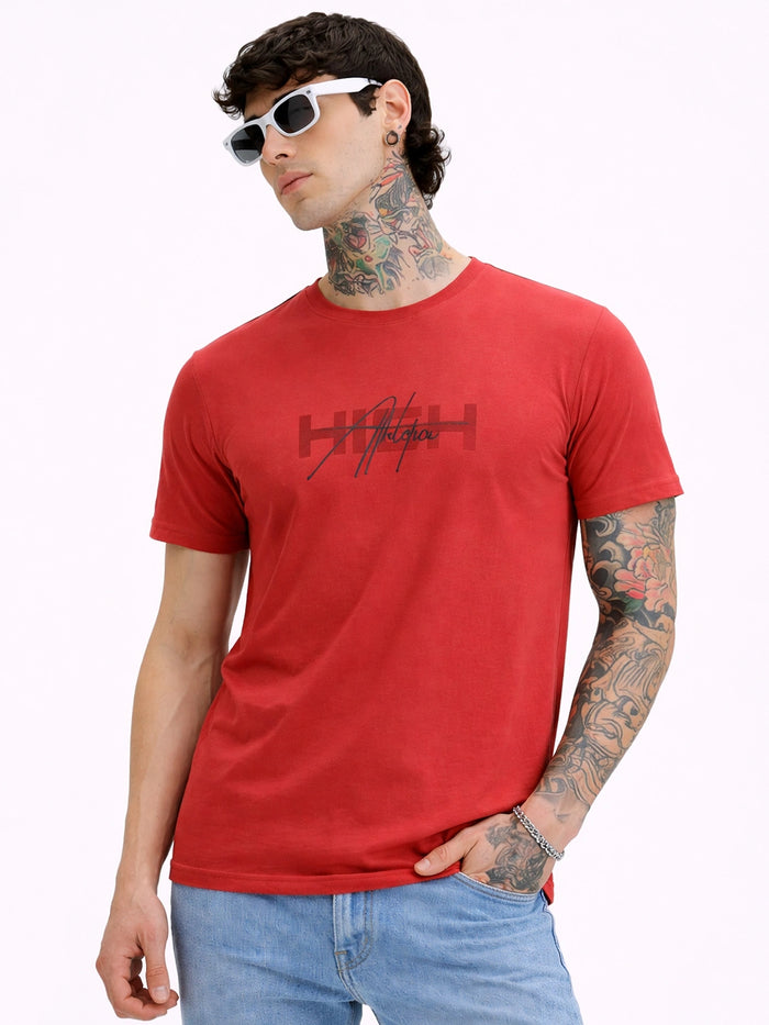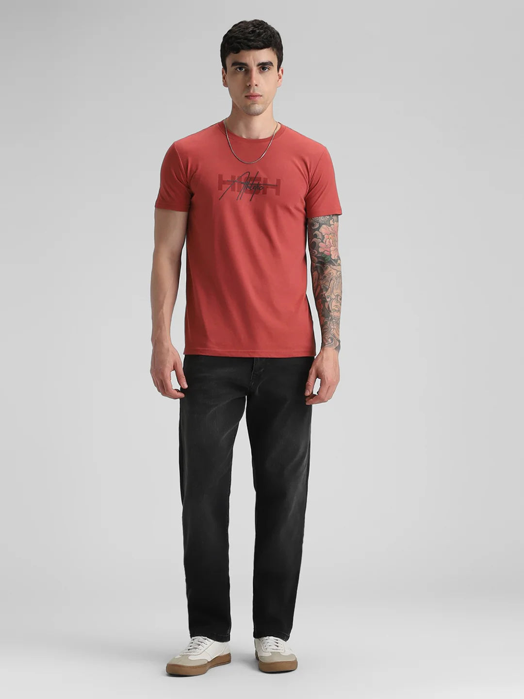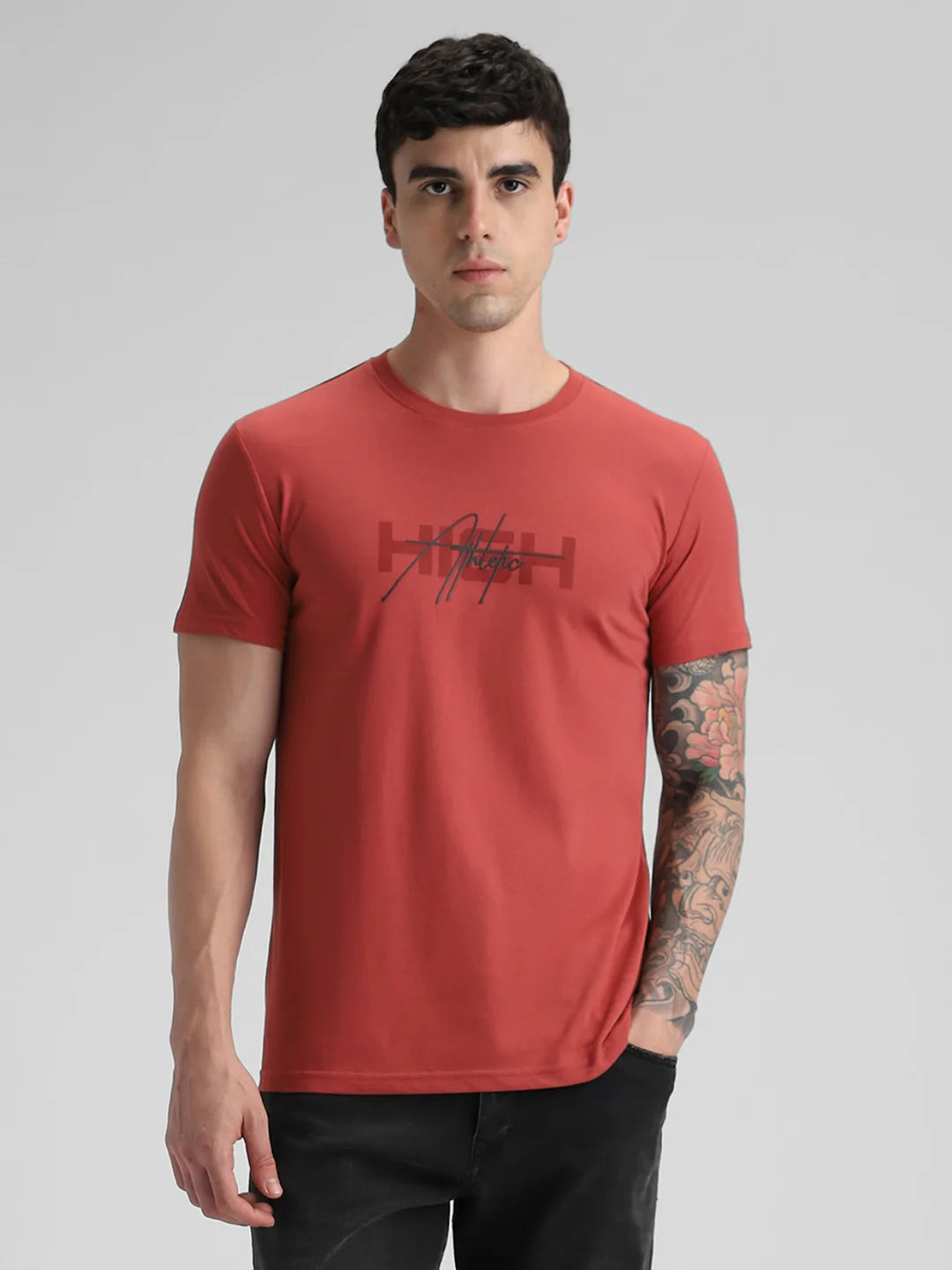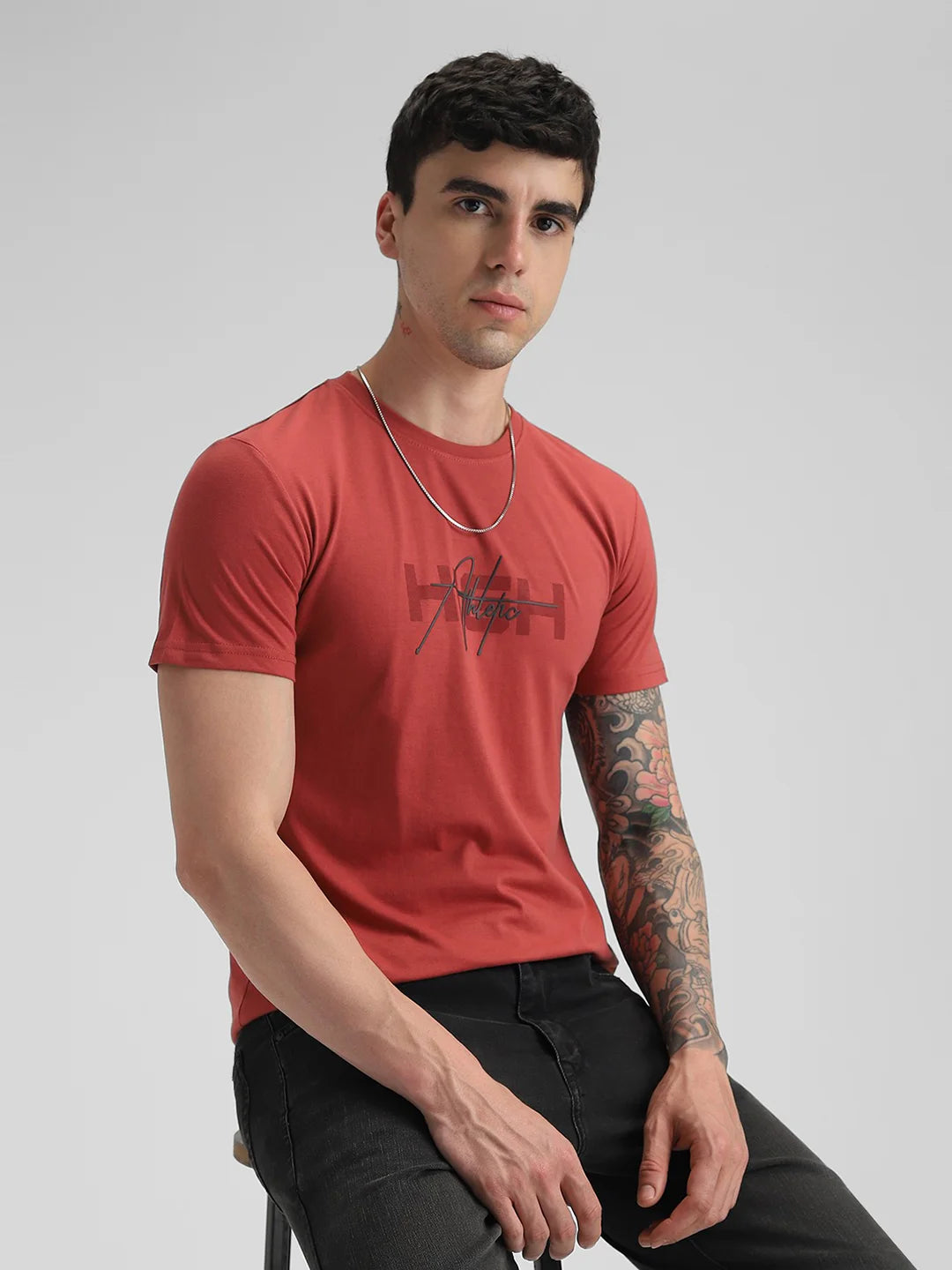 Brick Red Printed Crew T-Shirt Sale price₹499 Regular price₹999