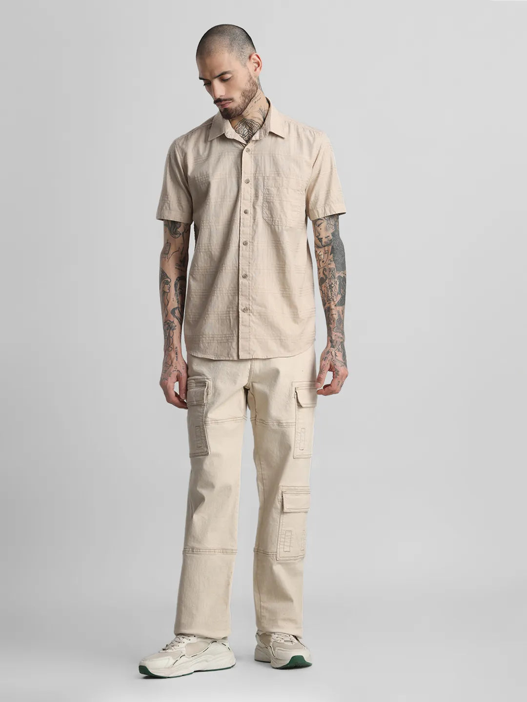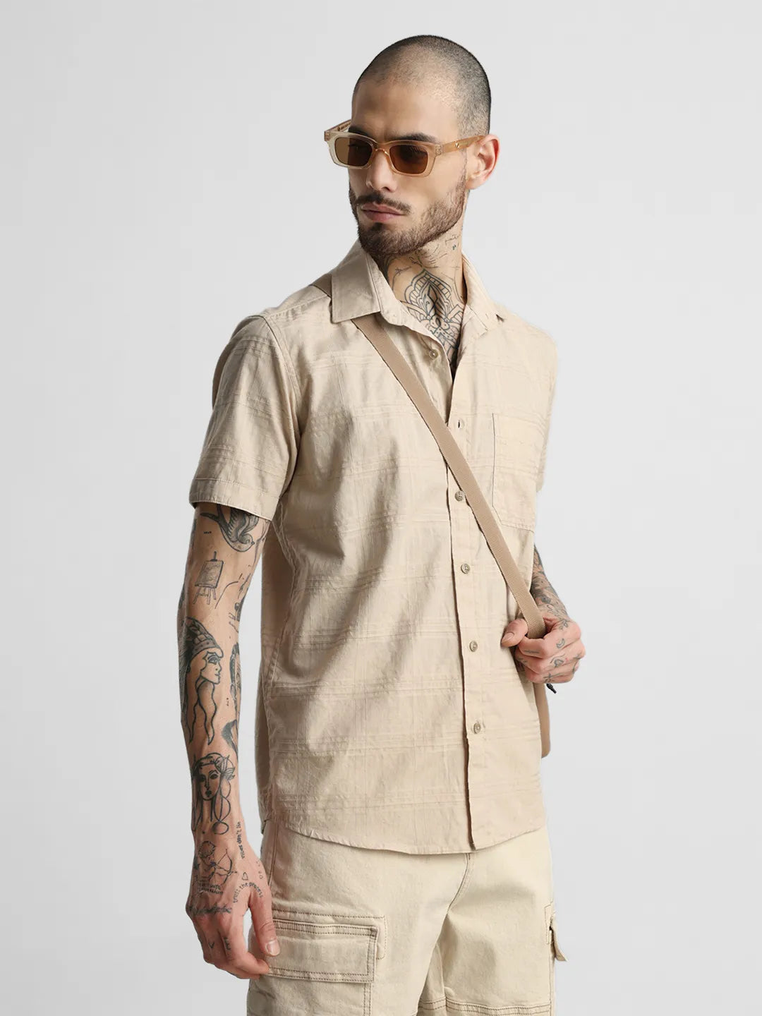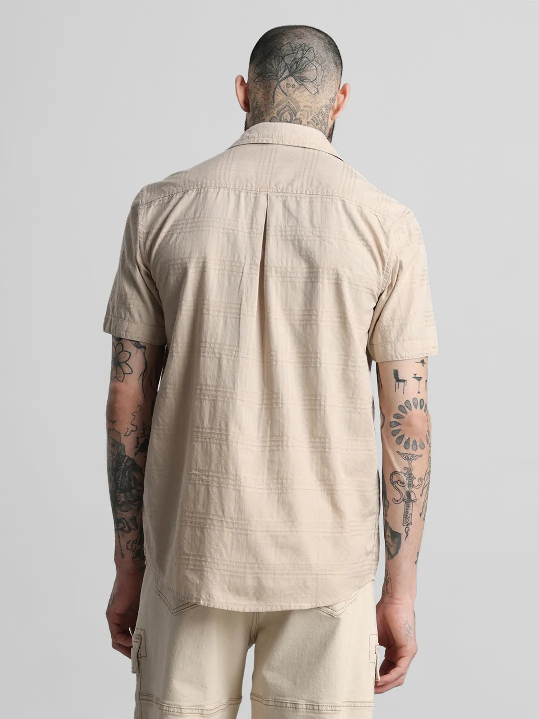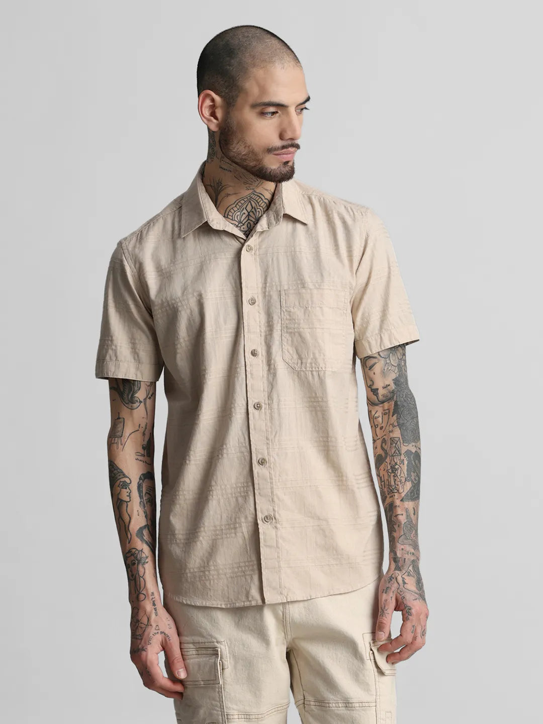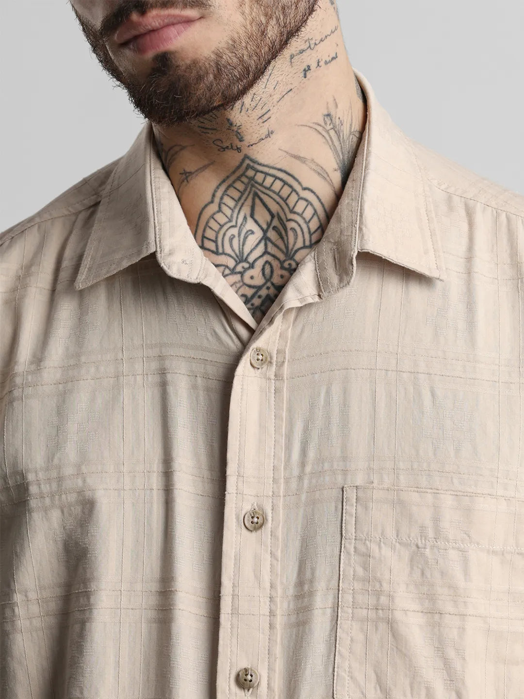 Beige Brown Self Checkered Shirt