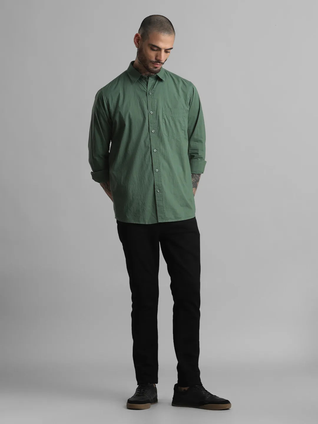 Green Solid Cotton Shirt