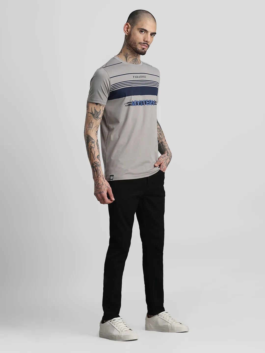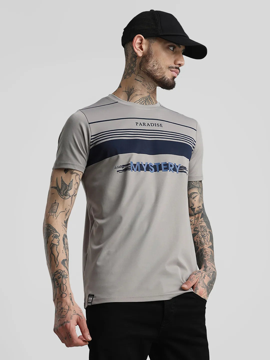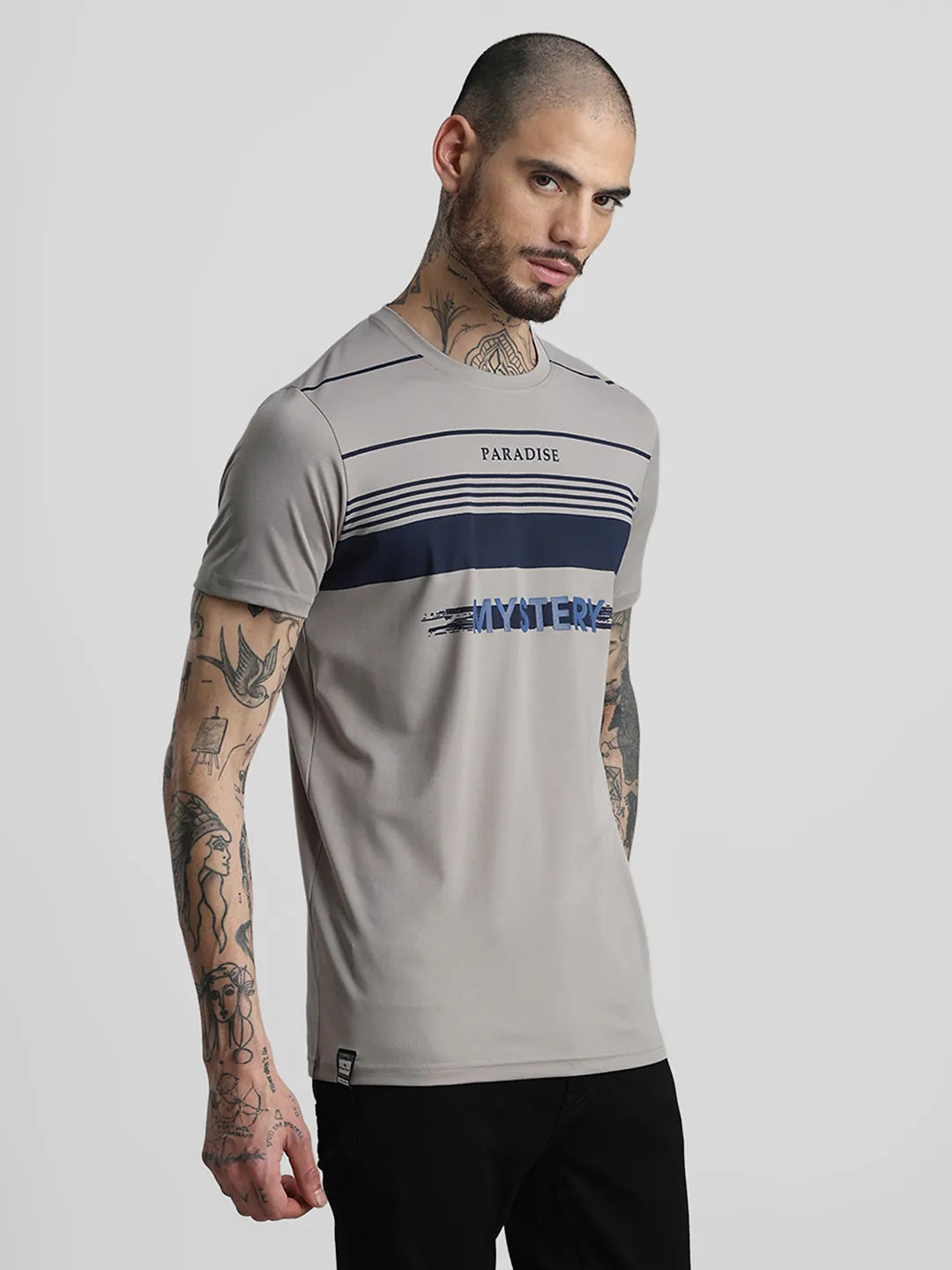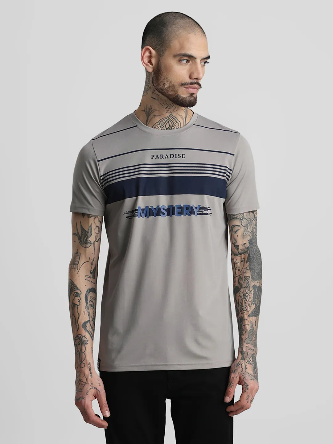 Grey Printed Round Neck T-Shirt