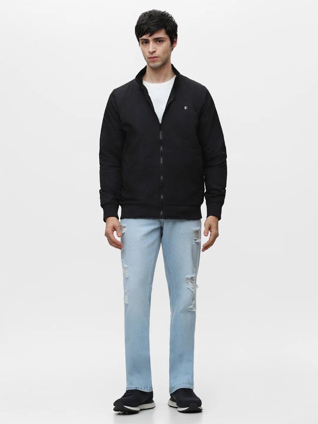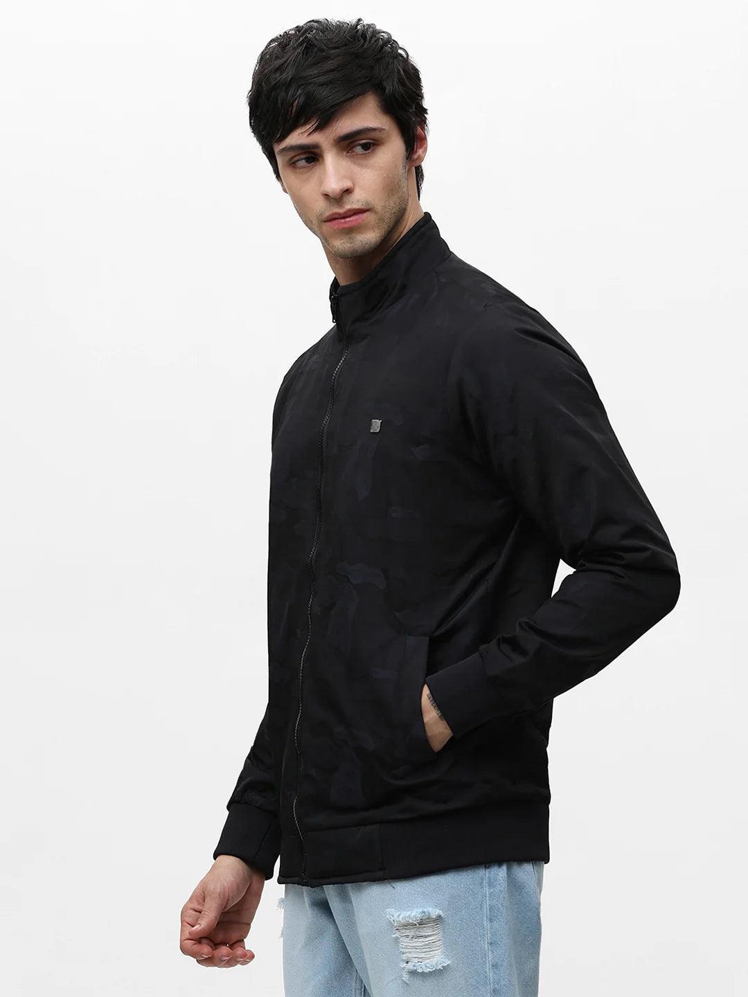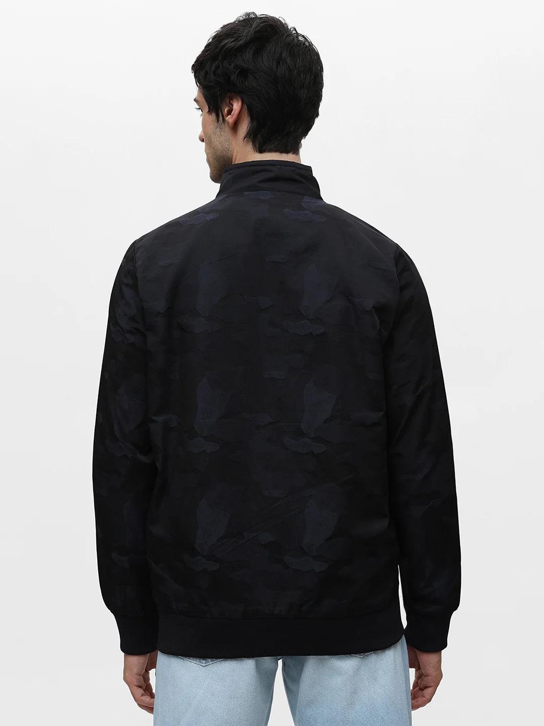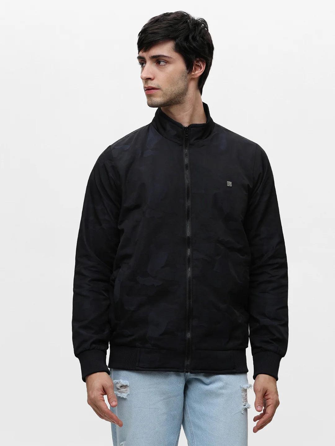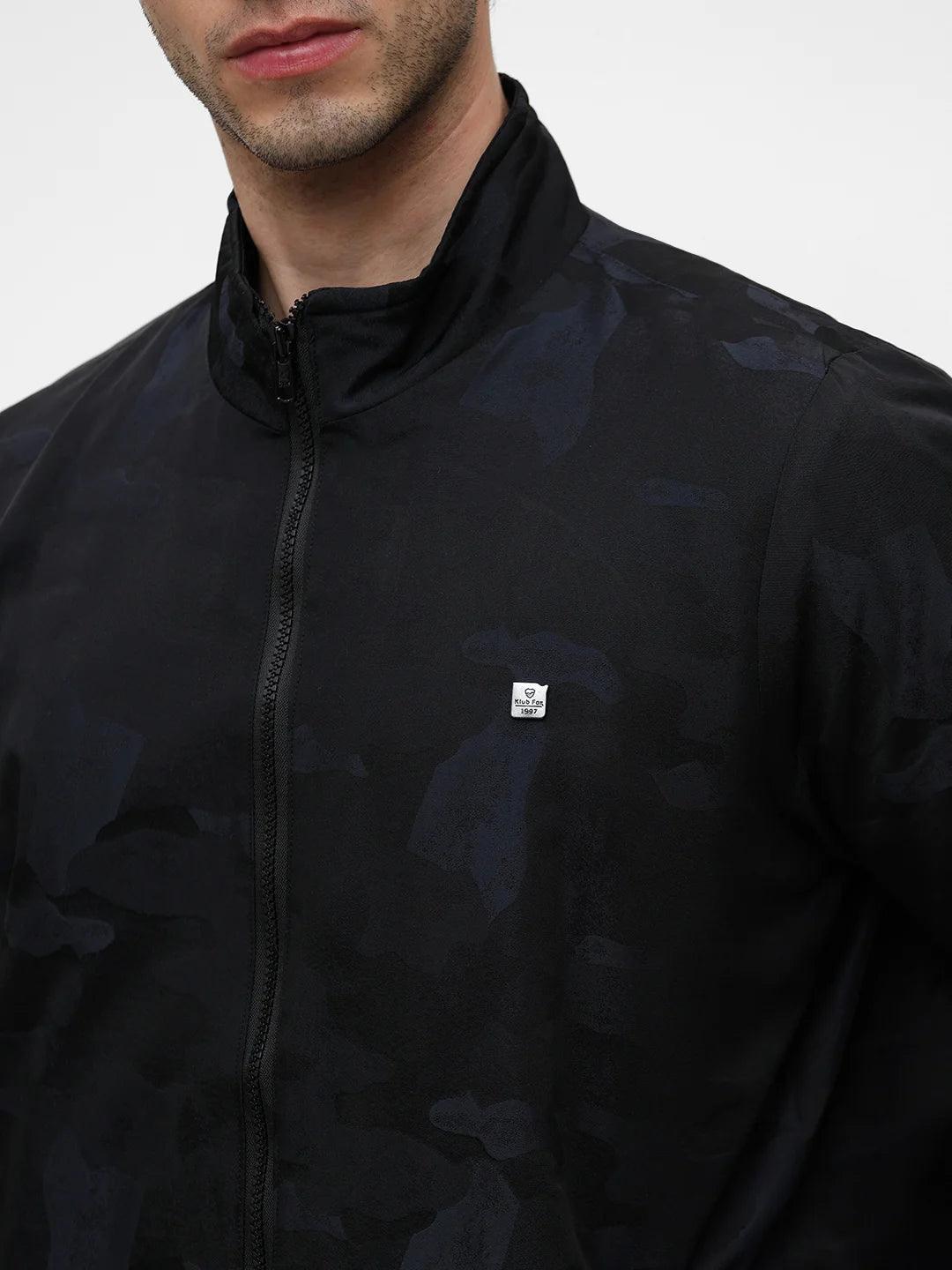 Navy Printed Zipper Jacket