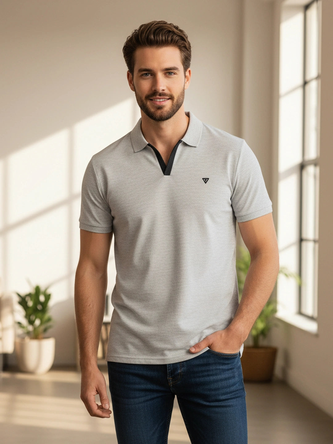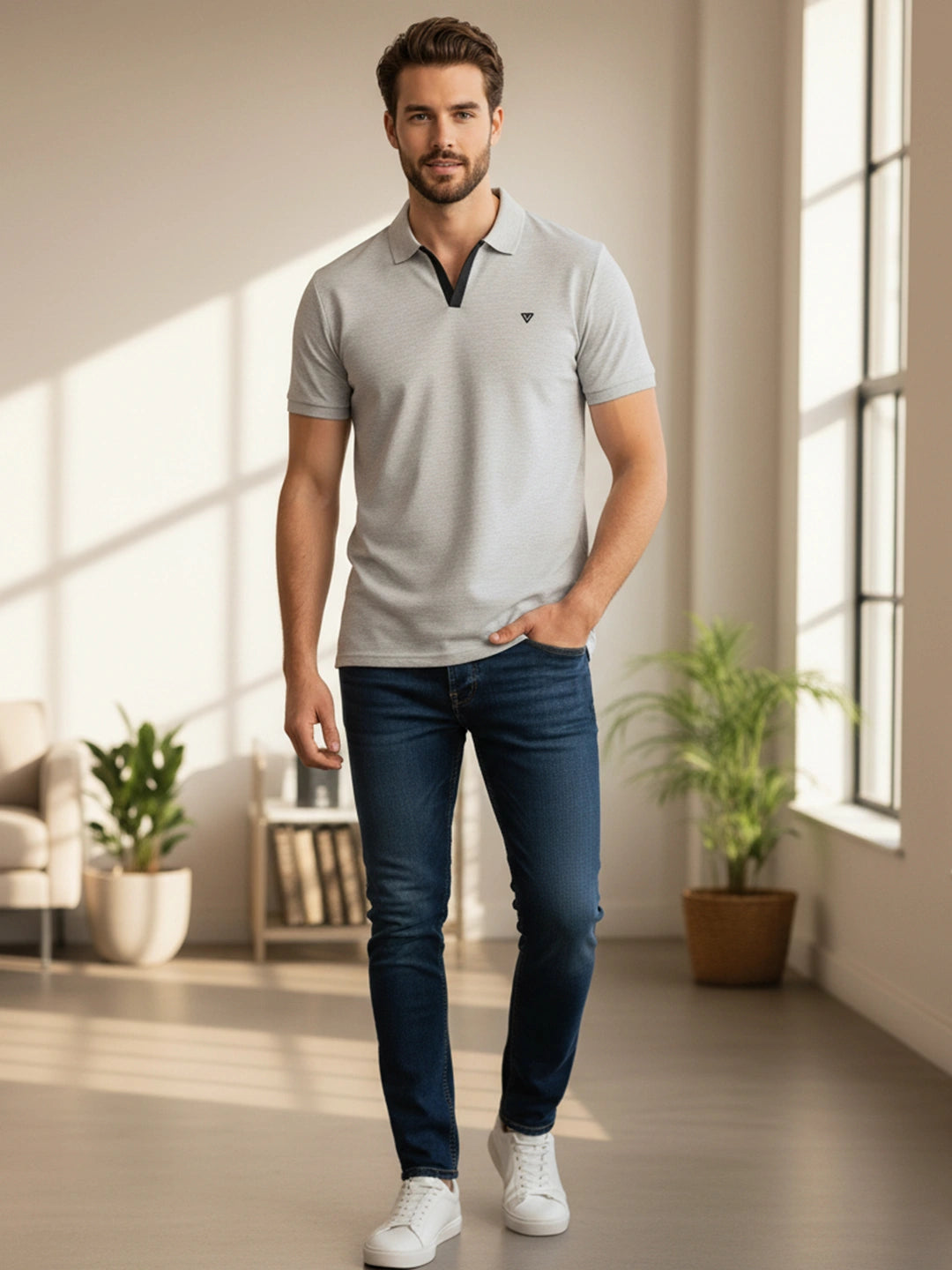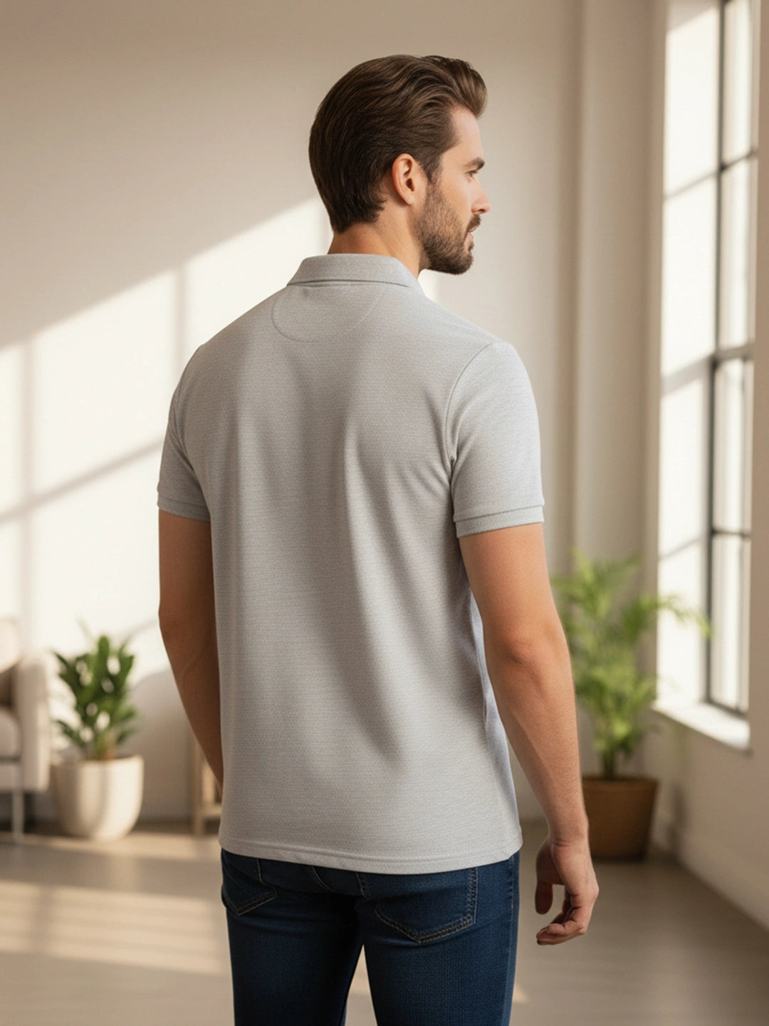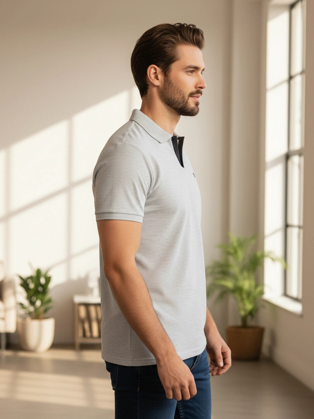 KF Ecru Melange Solid Polo Regular Fit T-Shirt