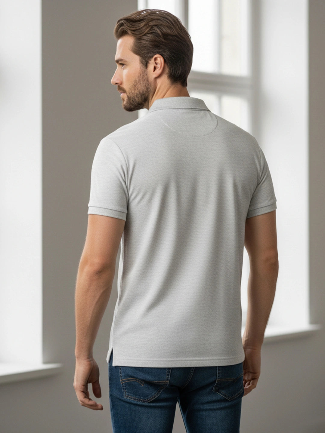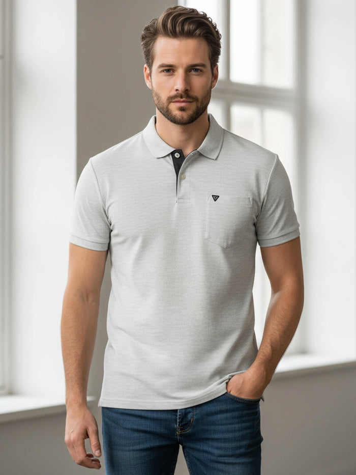 KF Ecru Melange Solid Polo Regular Fit T-Shirt