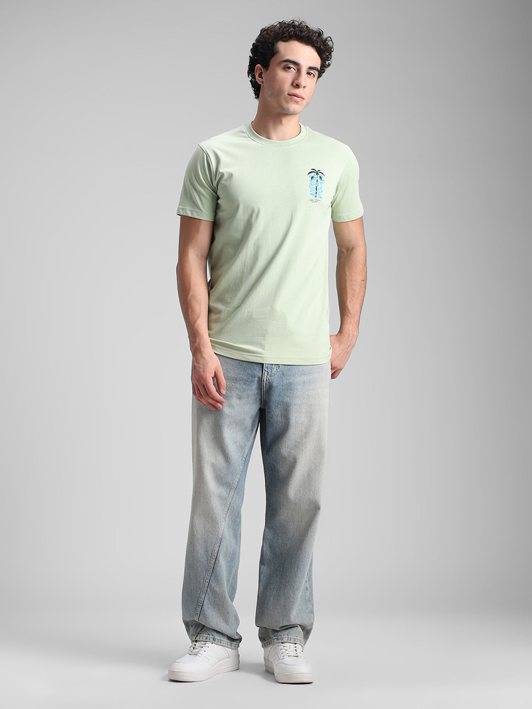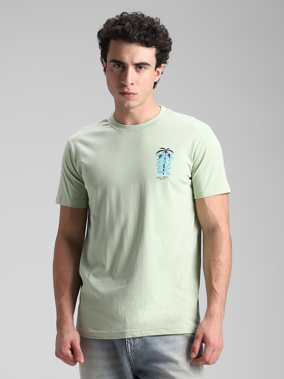 Light Green Printed Backprint Crew T- Shirt Sale price₹499 Regular price₹1,199