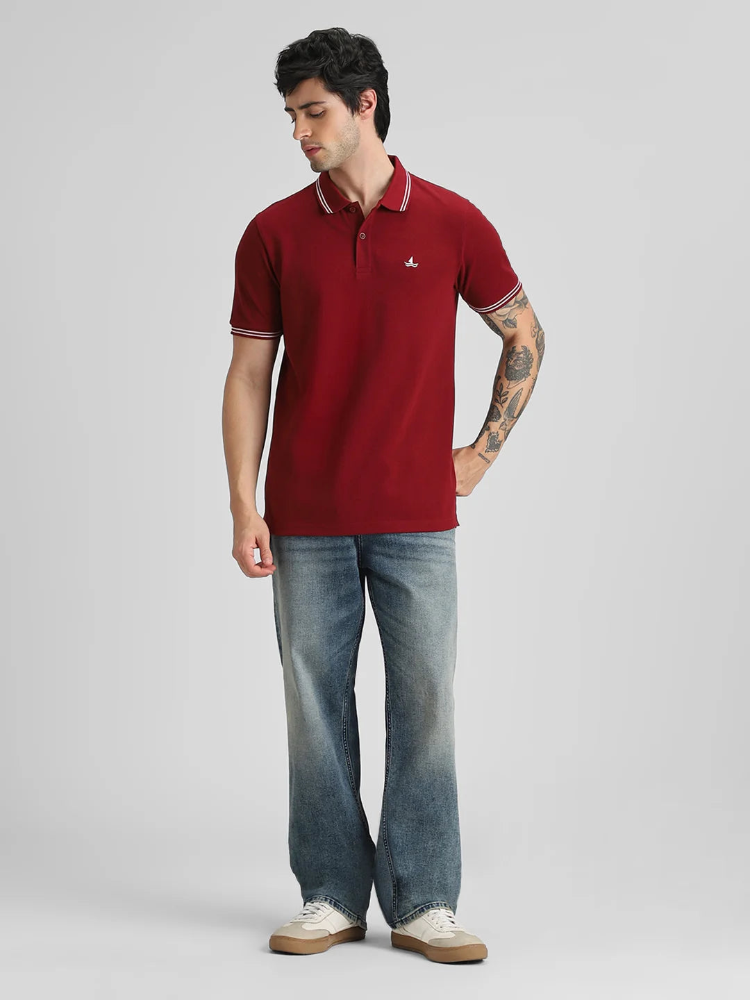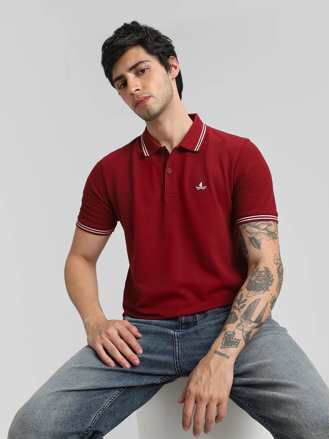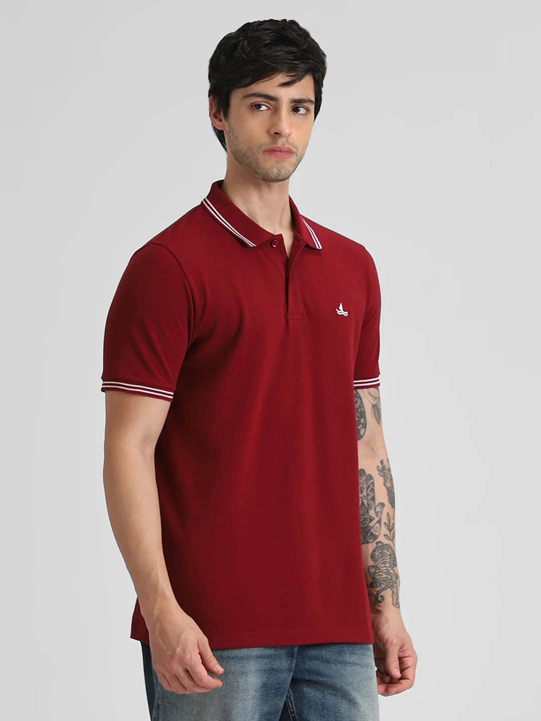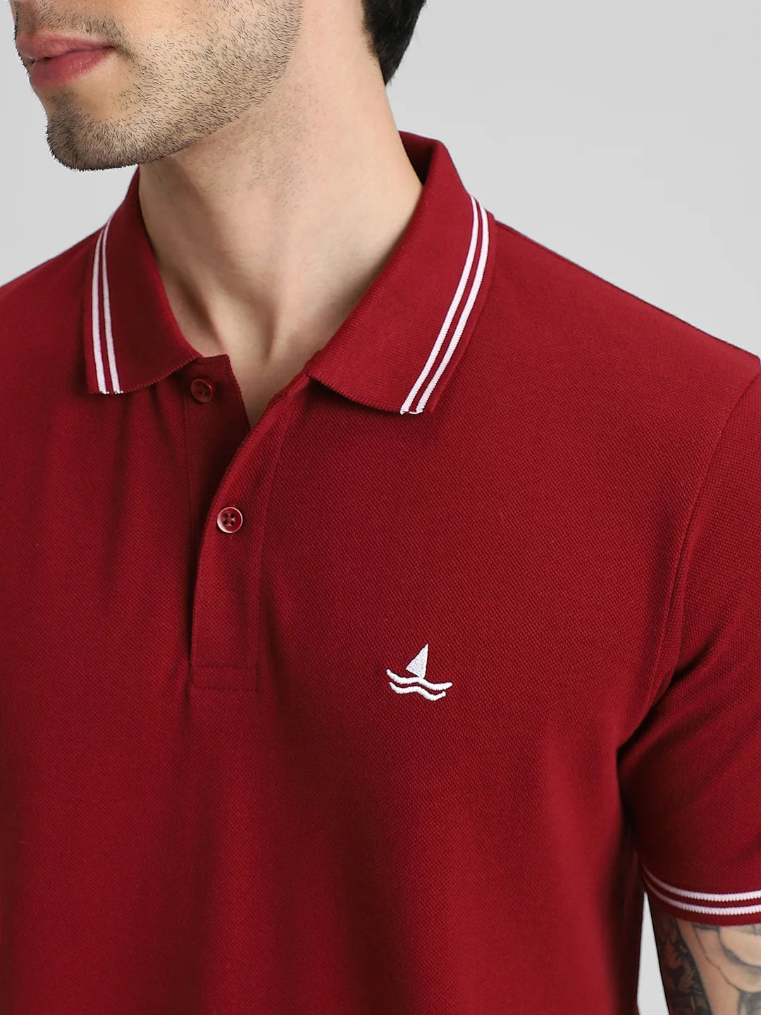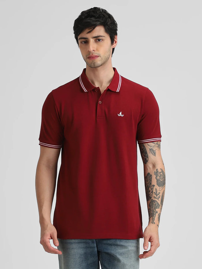 Marron Embroidered Solid Polo T-Shirt