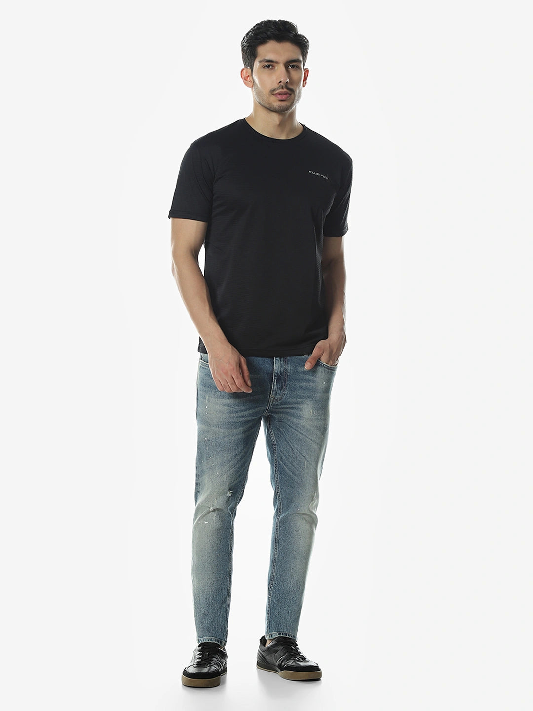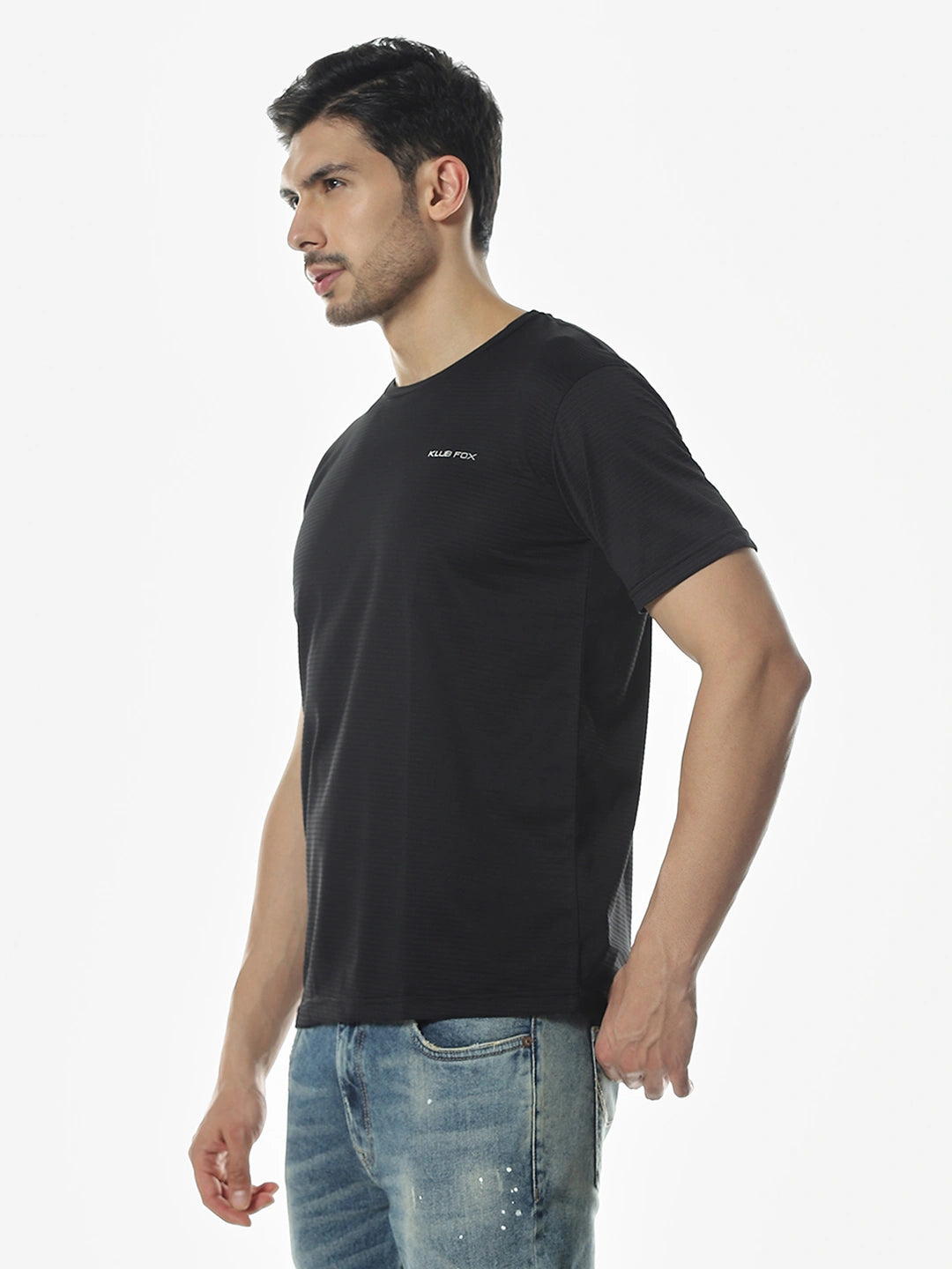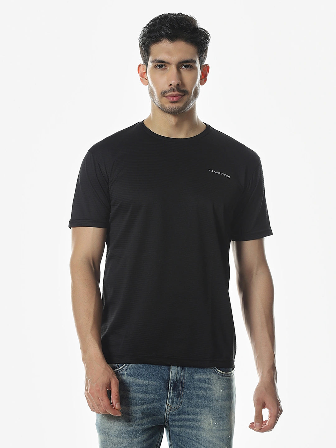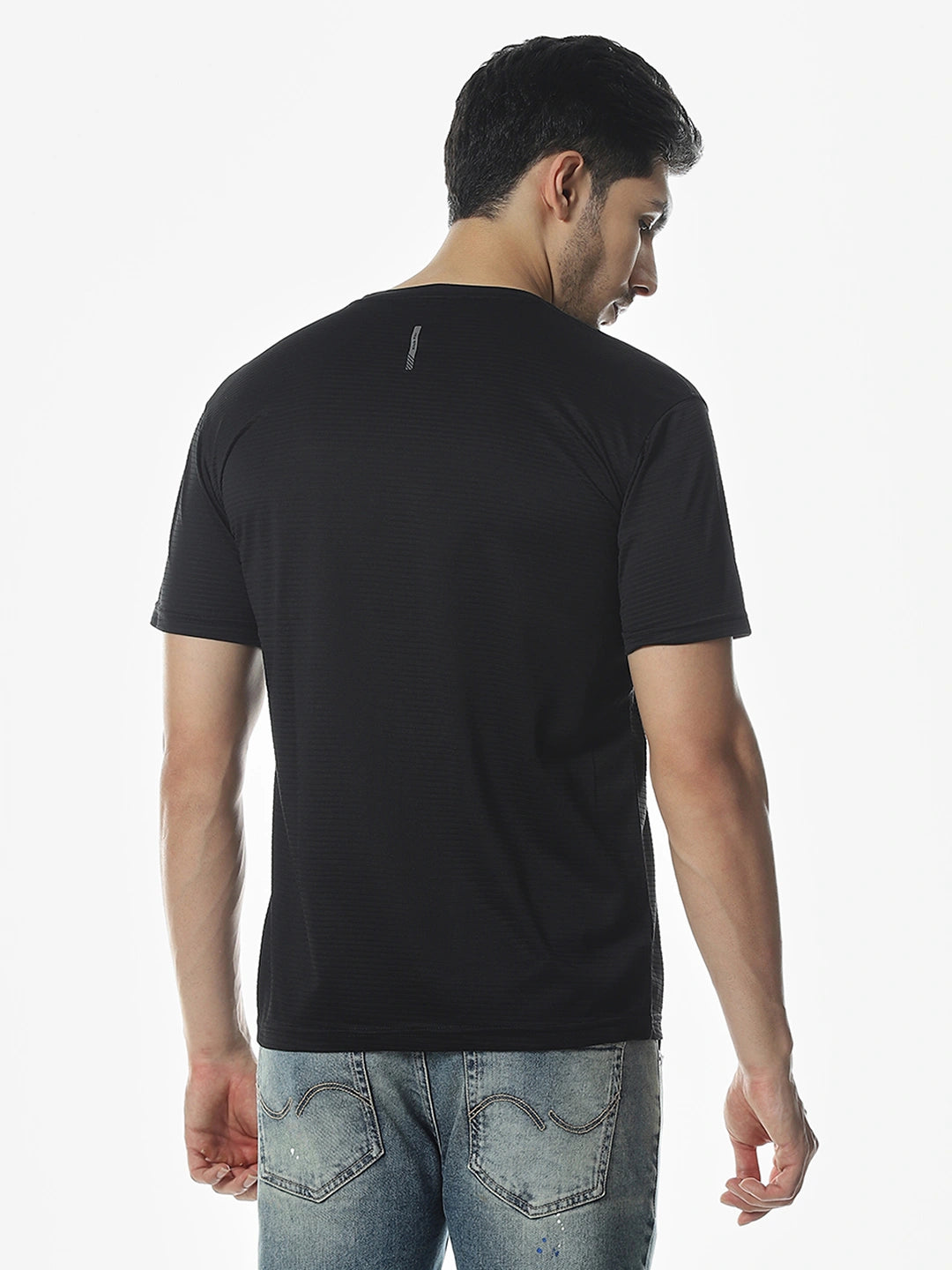 Black Solid Round Regular Fit T-Shirt
