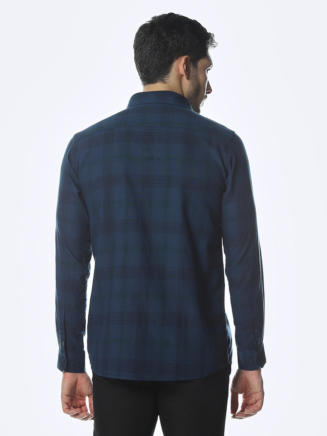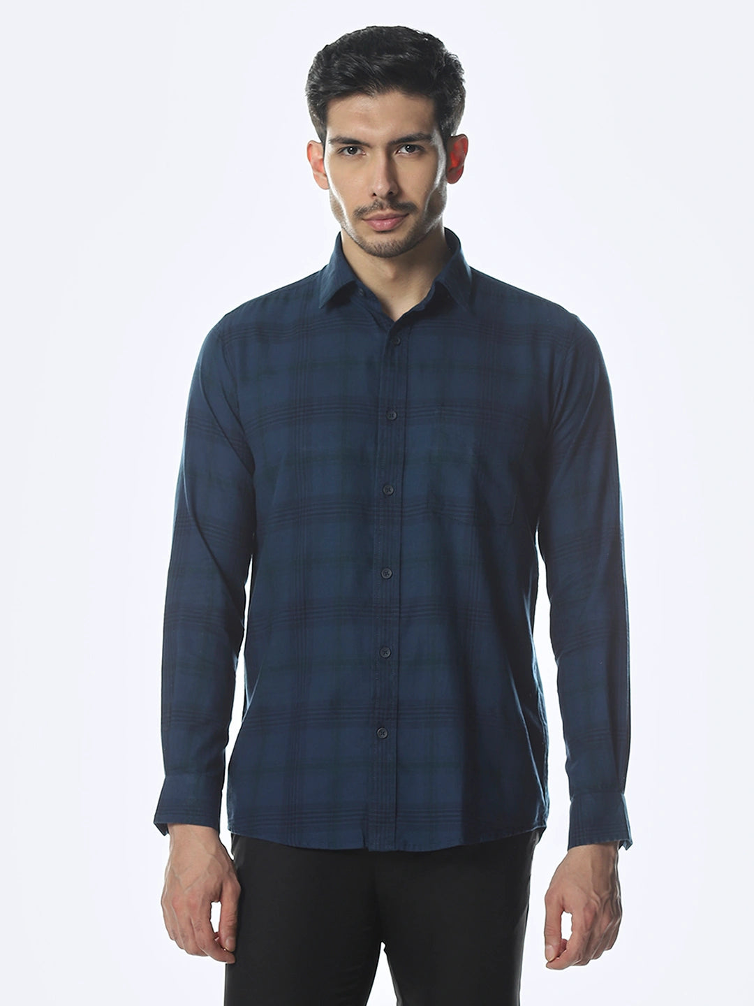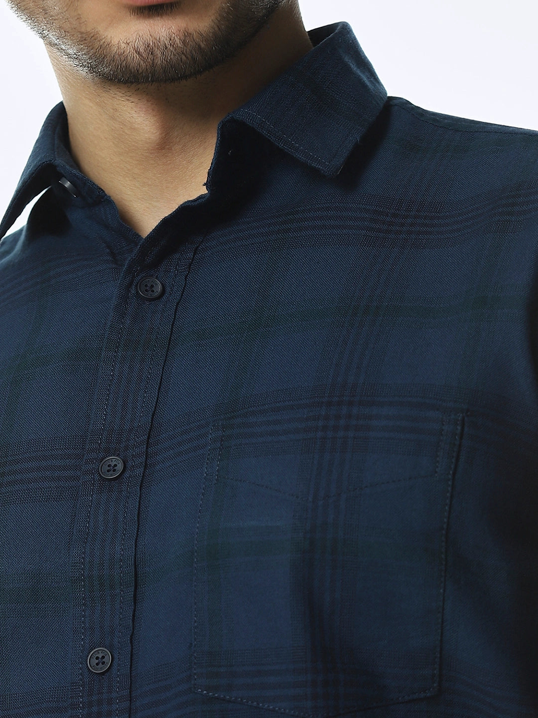Navy Checked Slim Fit Shirt