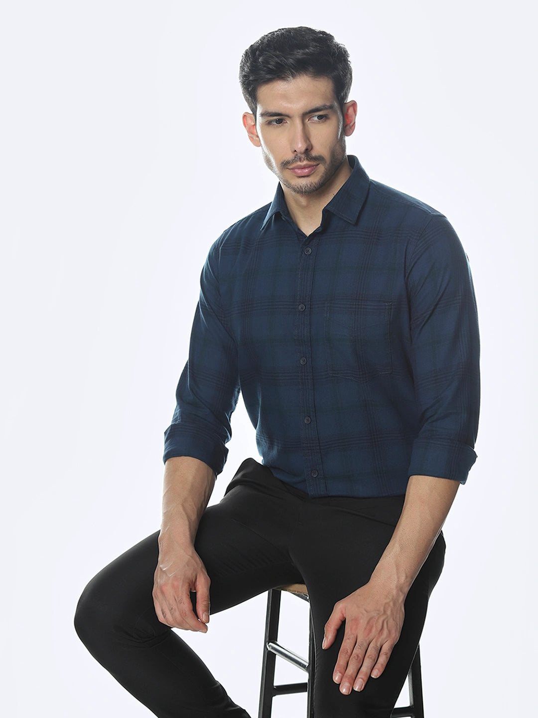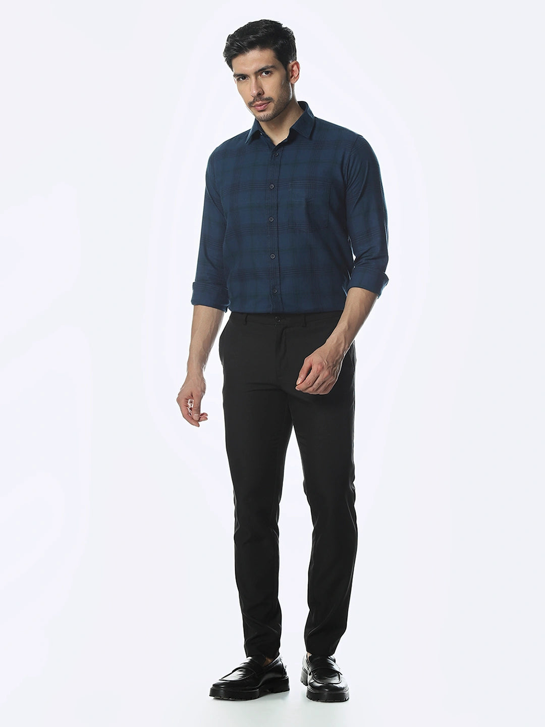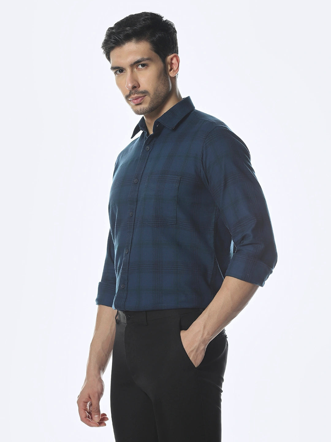 Navy Checked Slim Fit Shirt