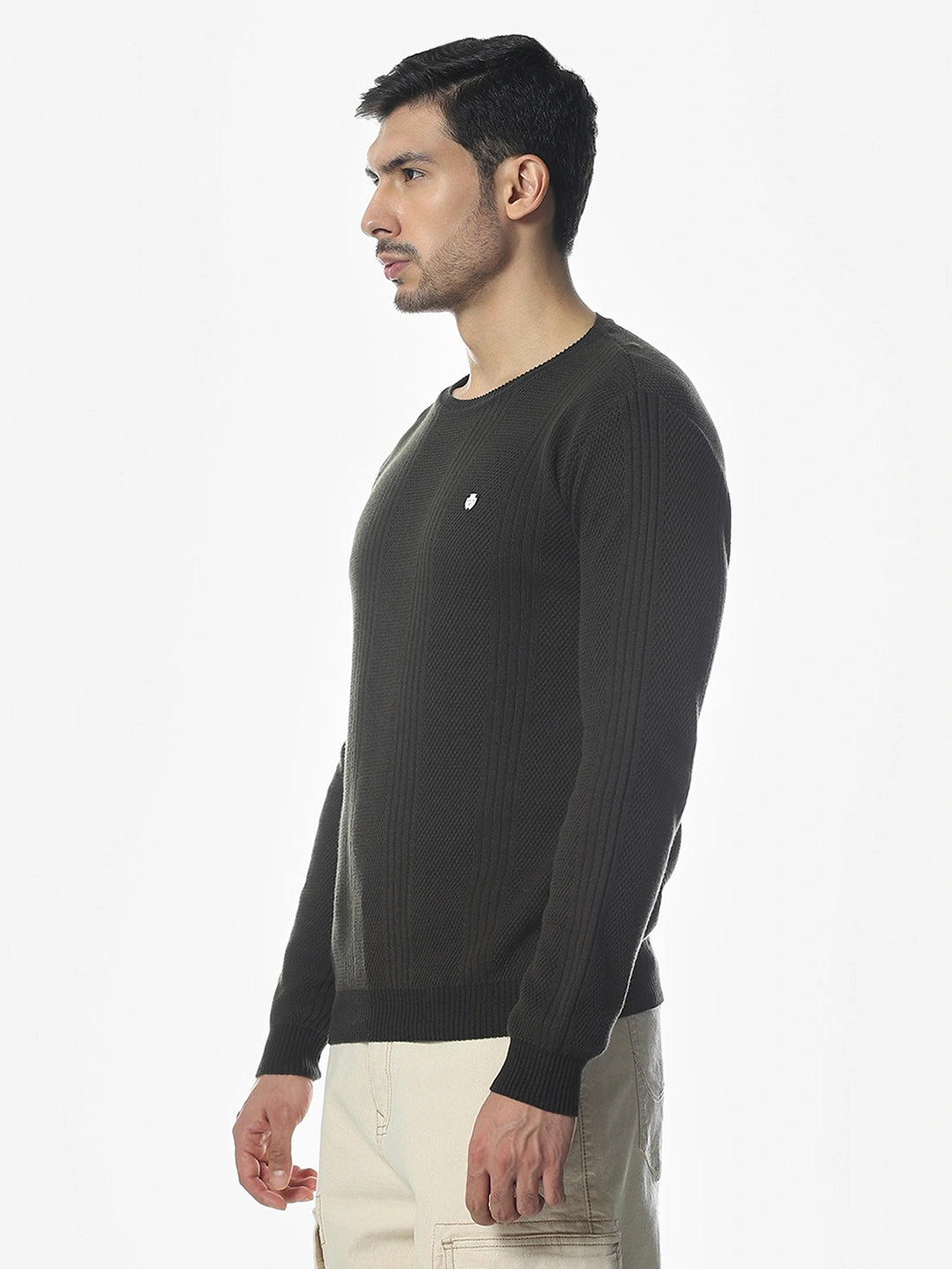 Textured Olive Solid Sweater