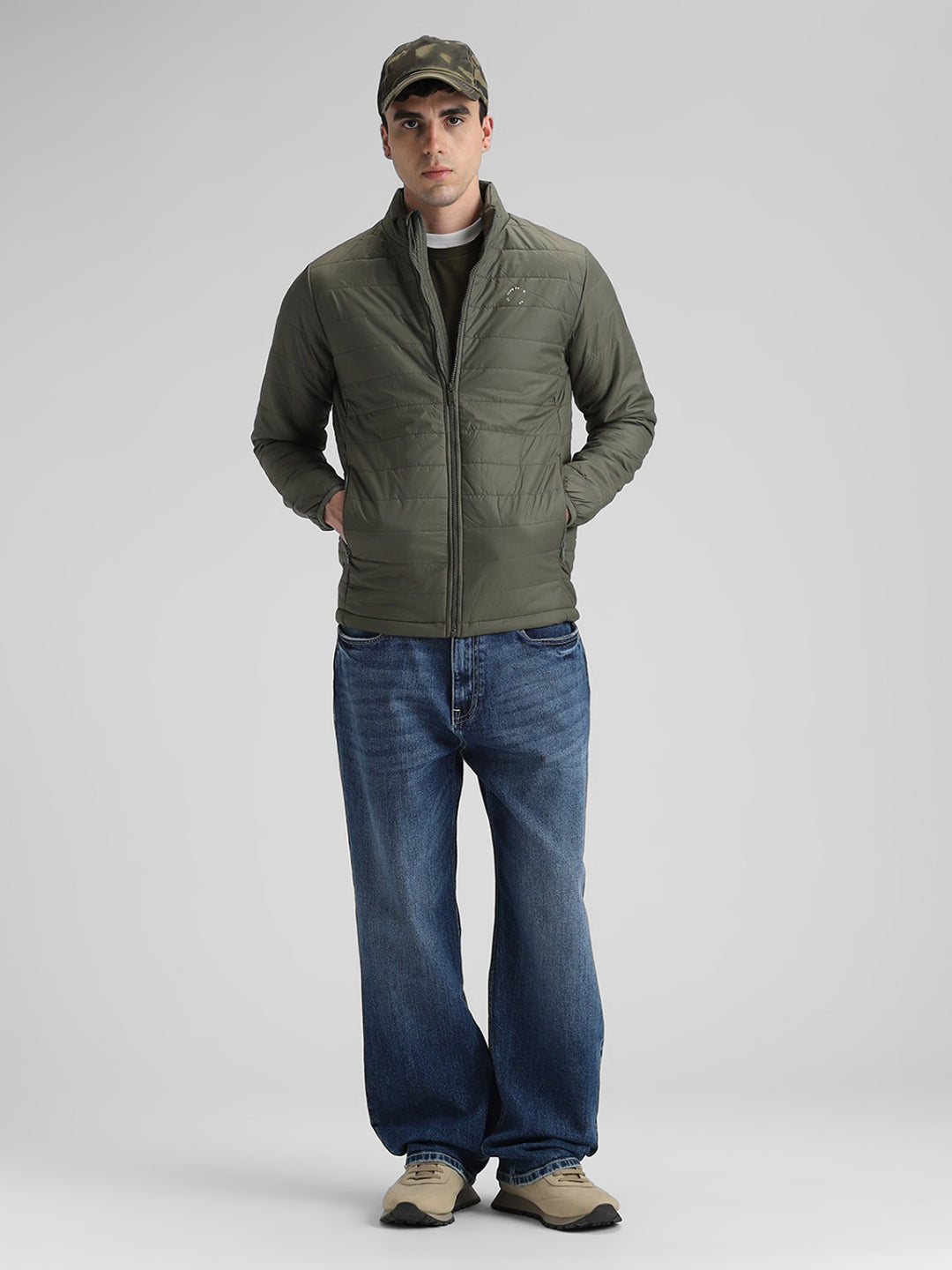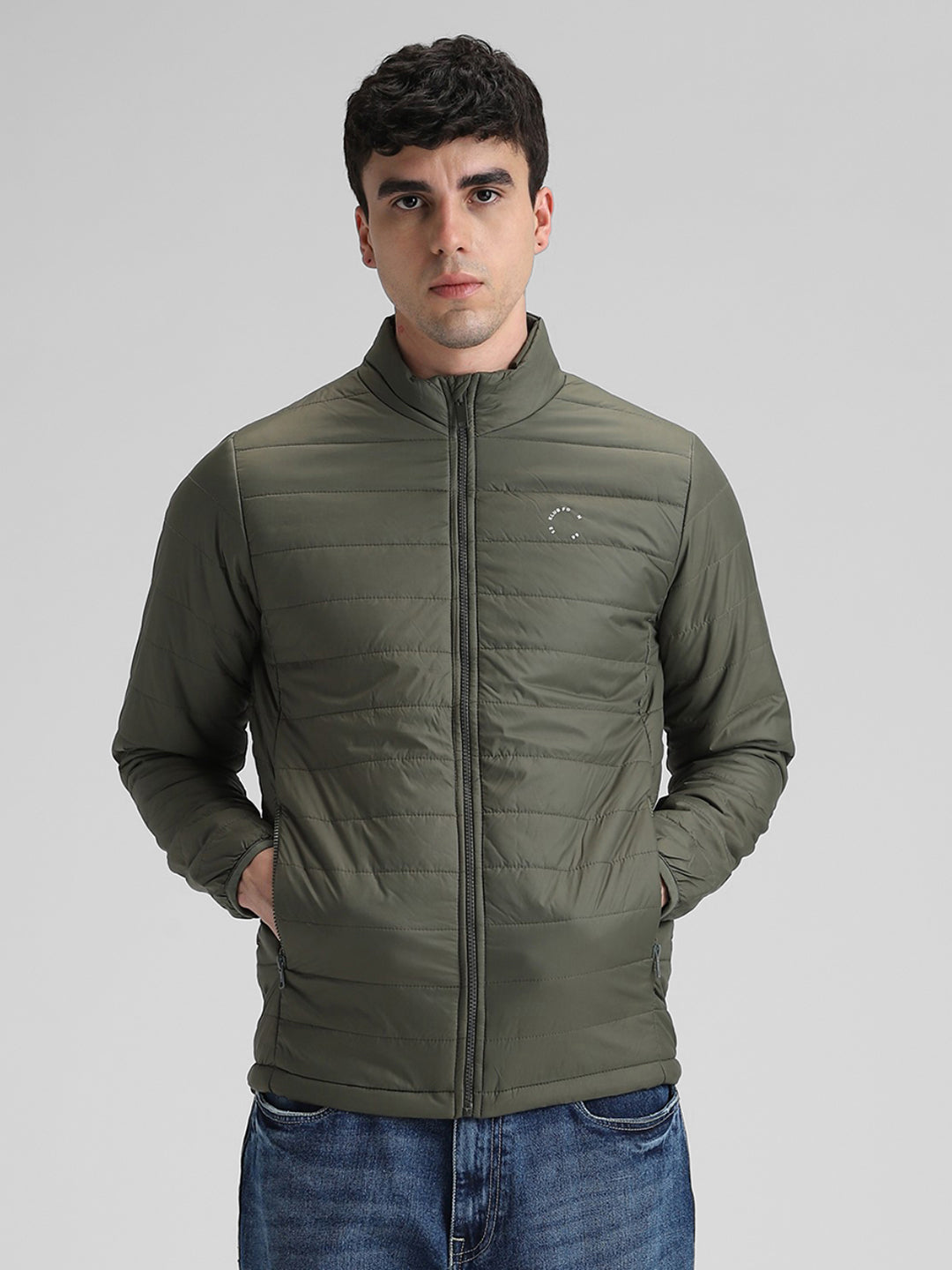 Olive Solid Puffer Jacket