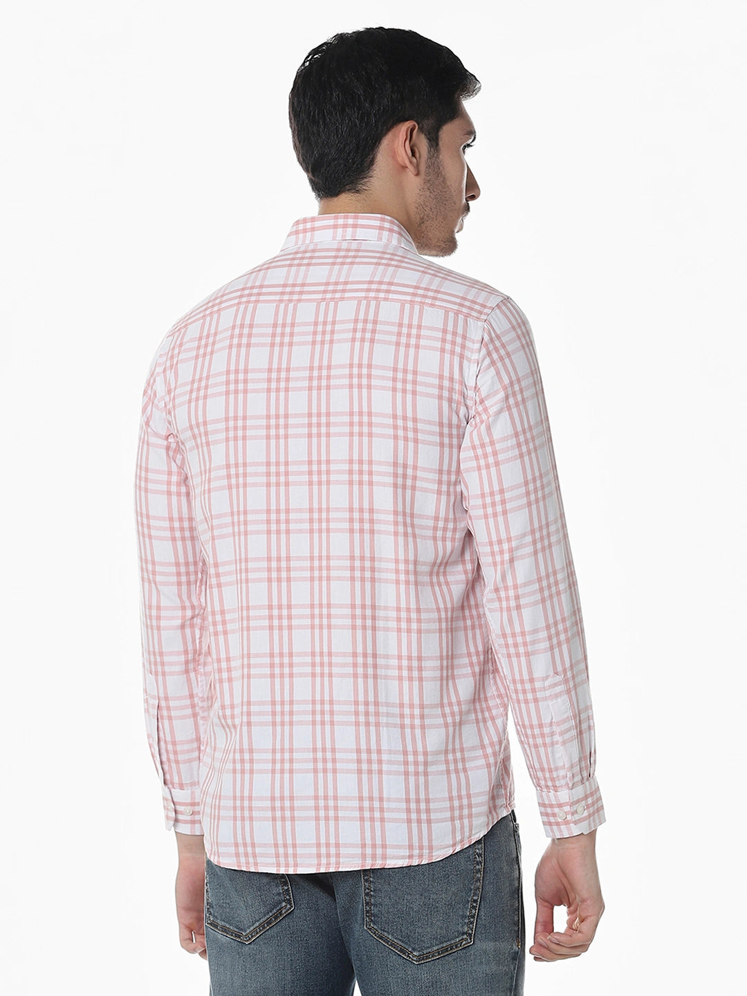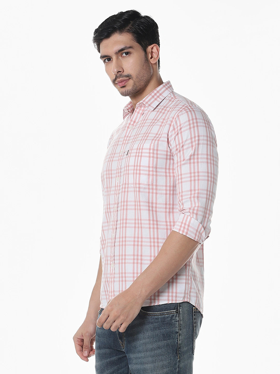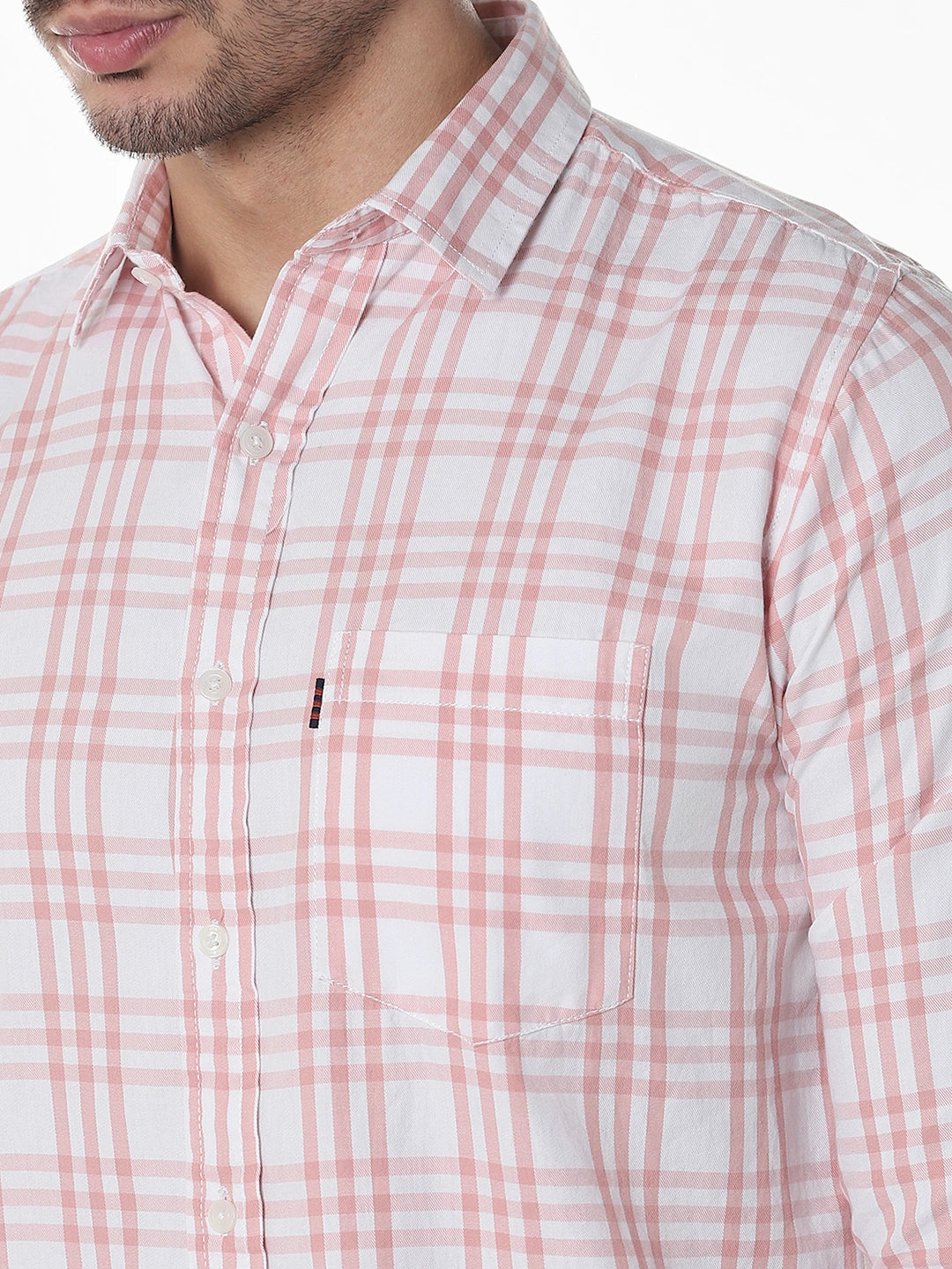 Peach Checked Slim Fit Shirt