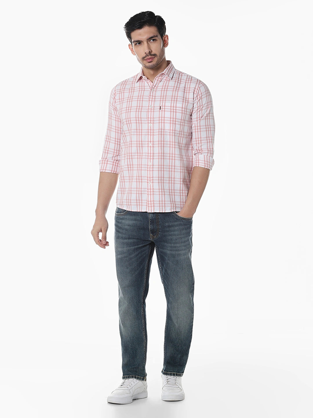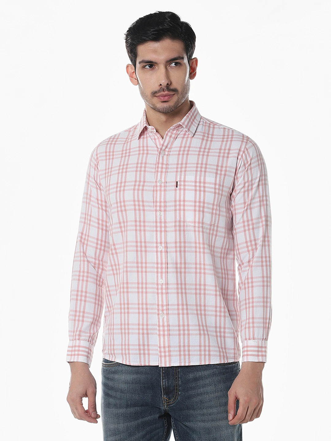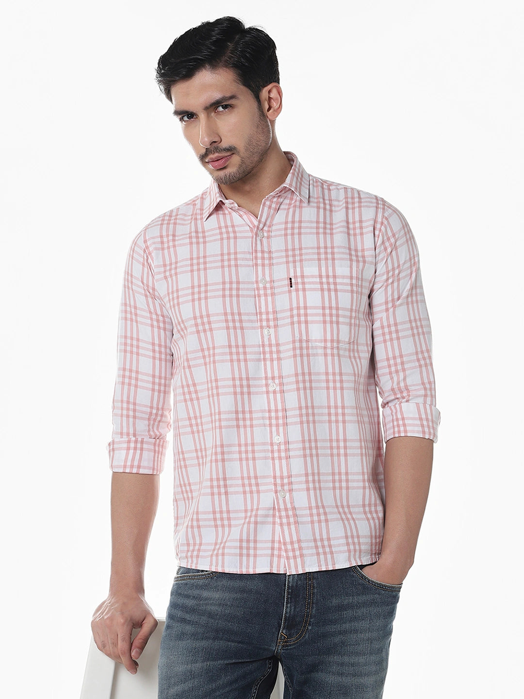 Peach Checked Slim Fit Shirt