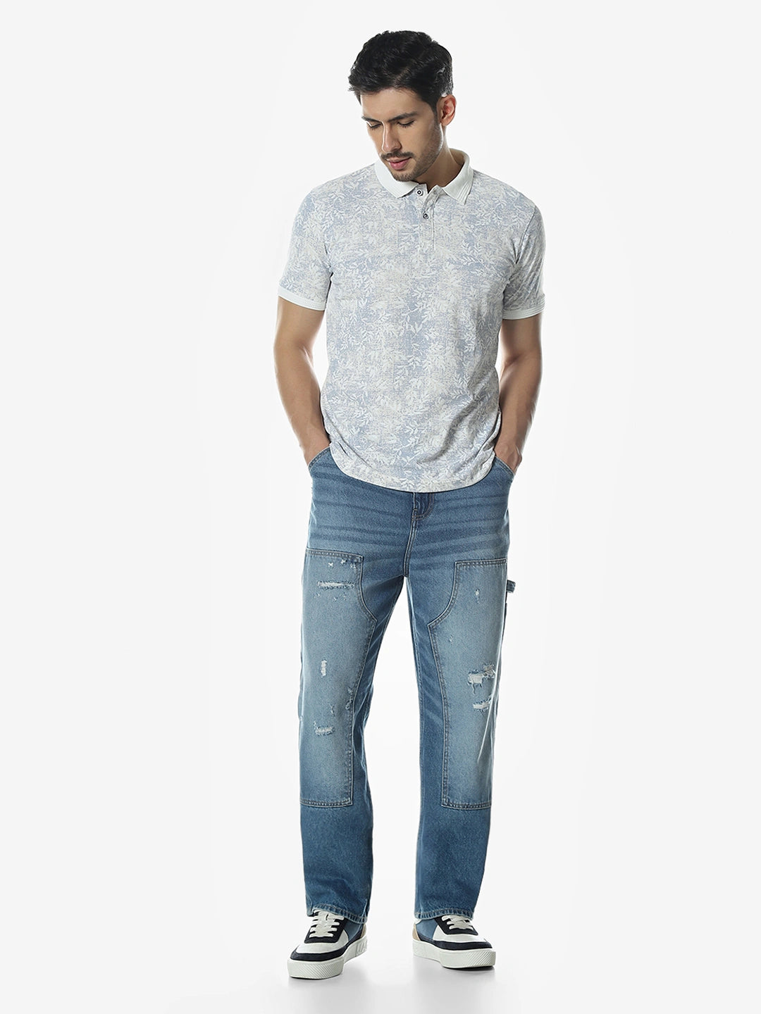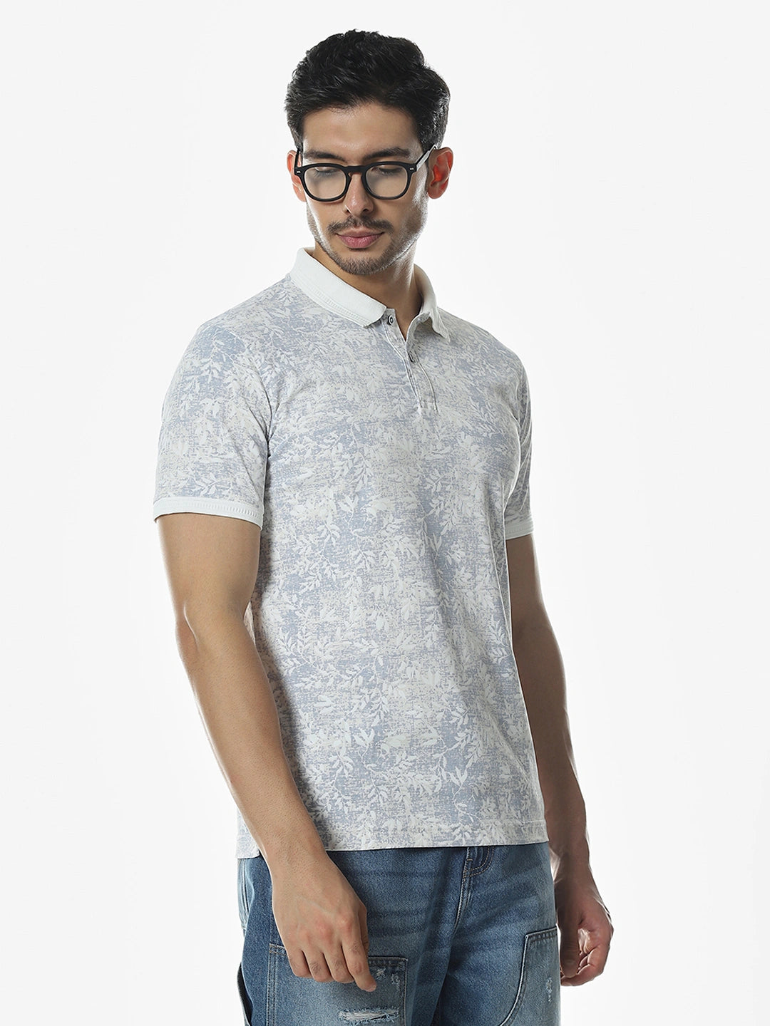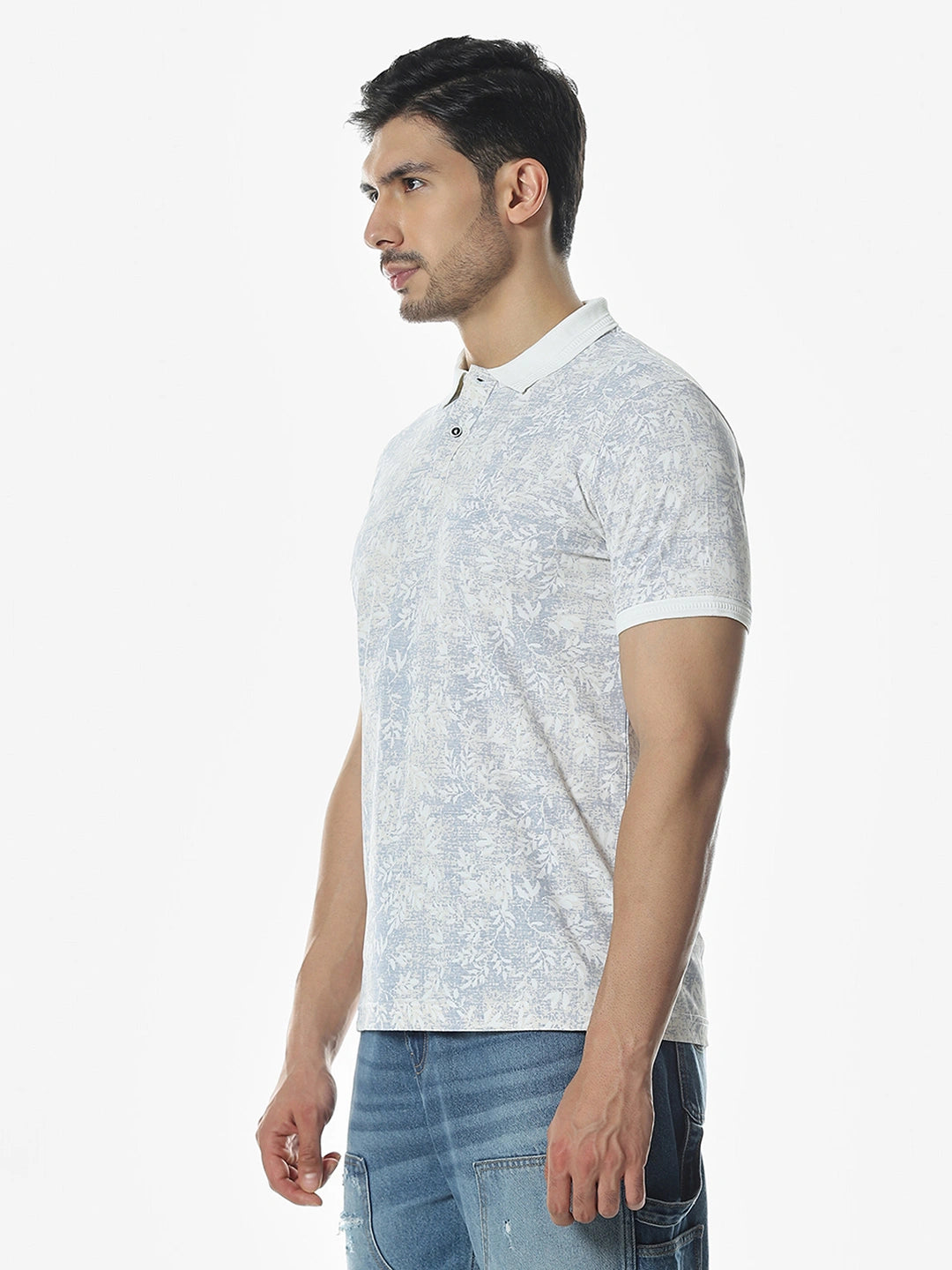 White Printed Polo T-Shirt