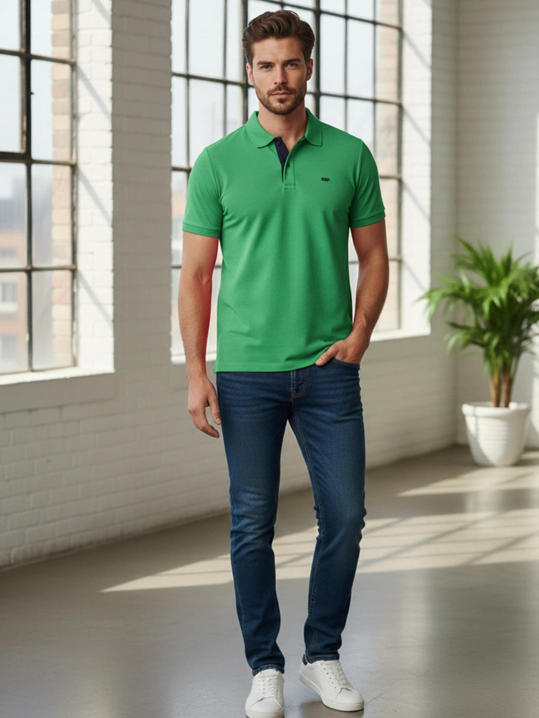 KF Neon Green Solid Polo Regular Fit T-Shirt