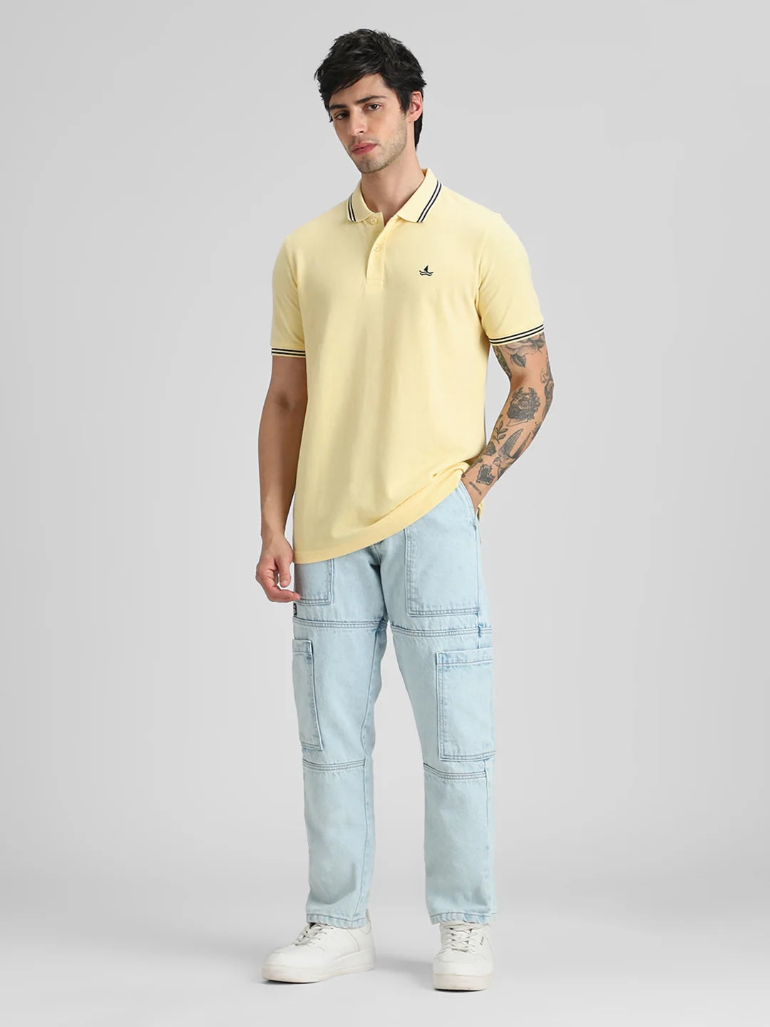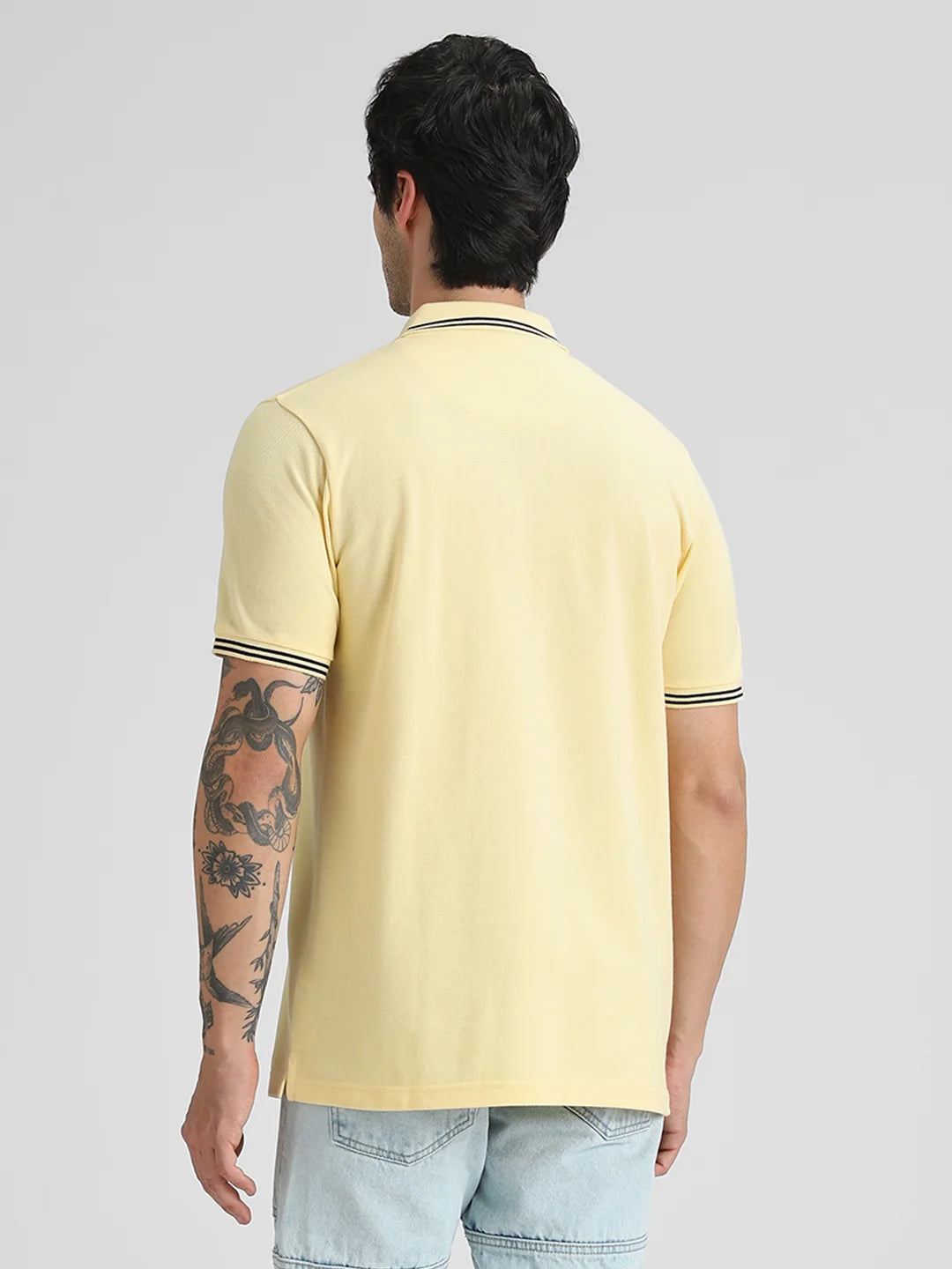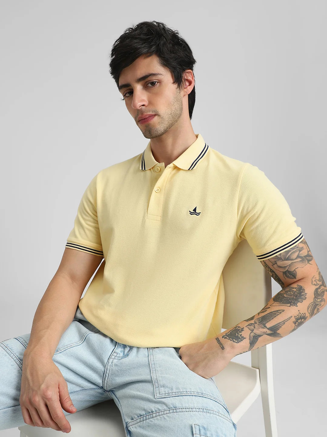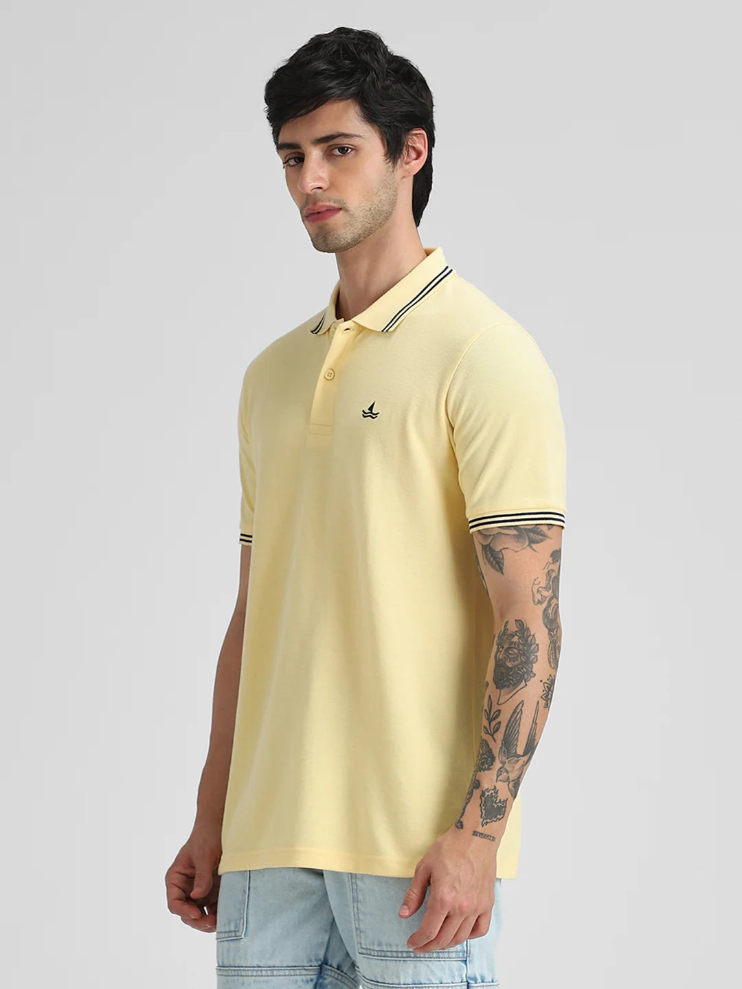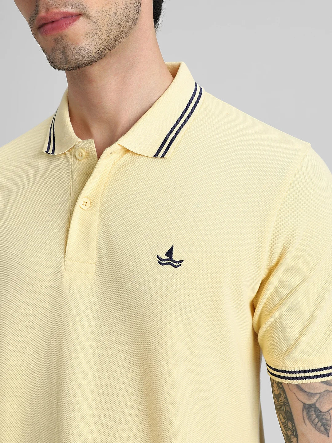 Pale Yellow Embroidered Solid Polo T-Shirt