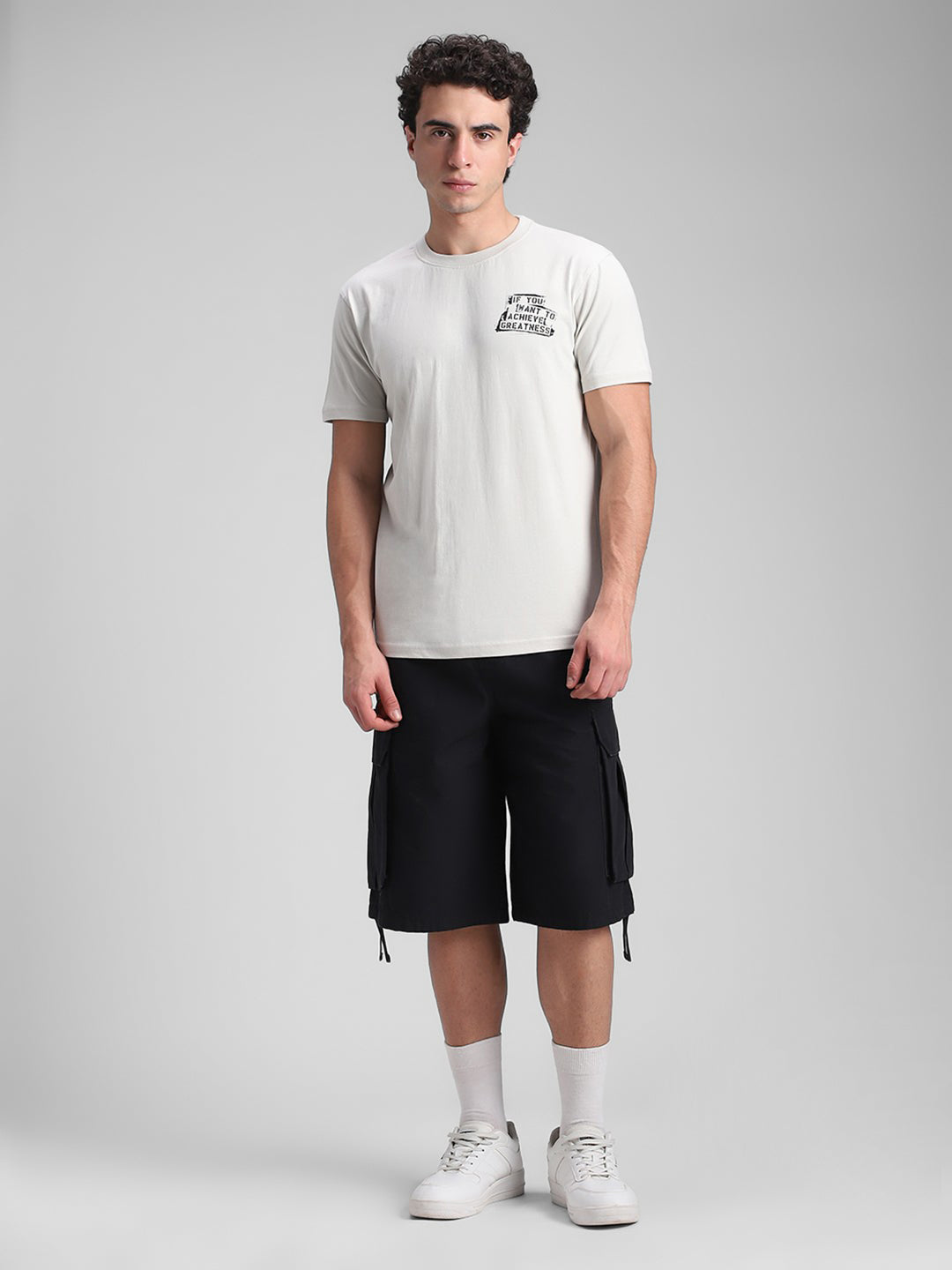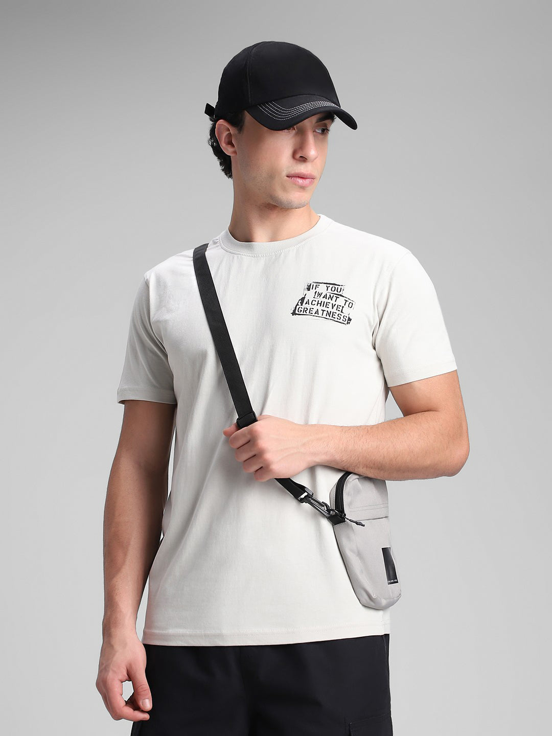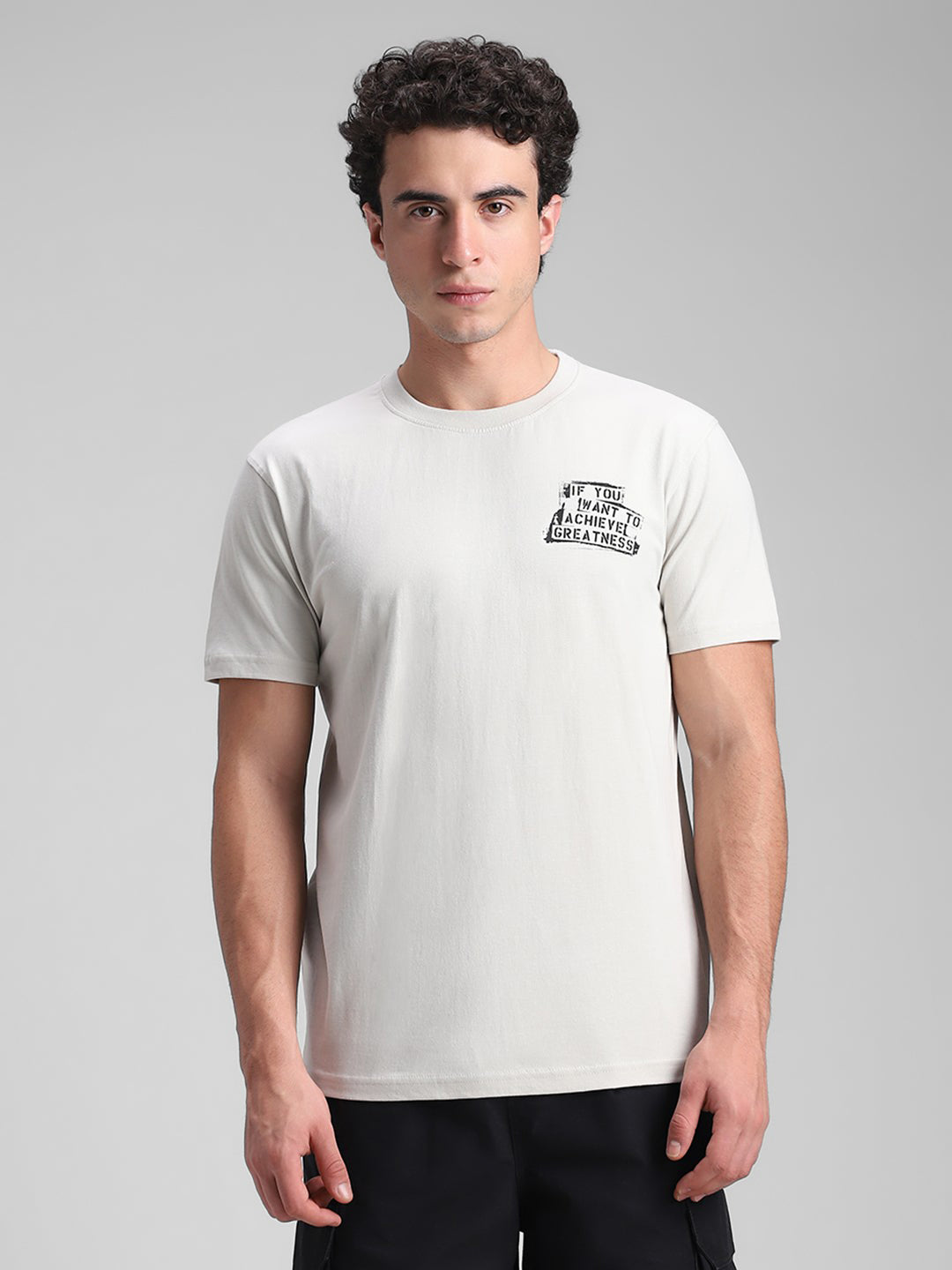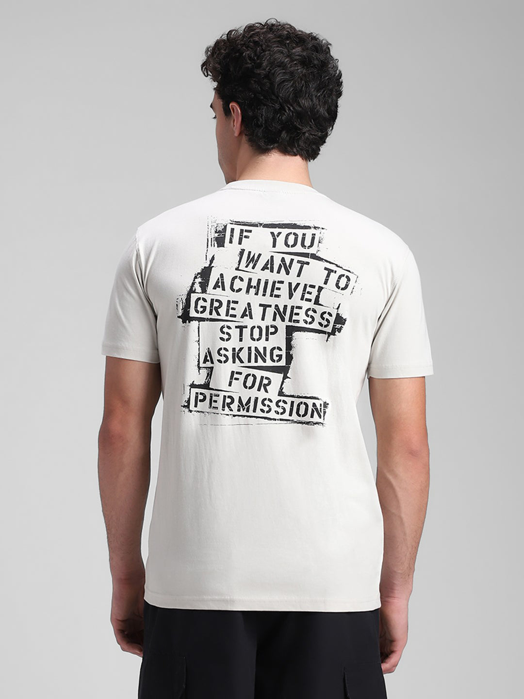 Space Grey Printed Backprint Crew T-Shirt