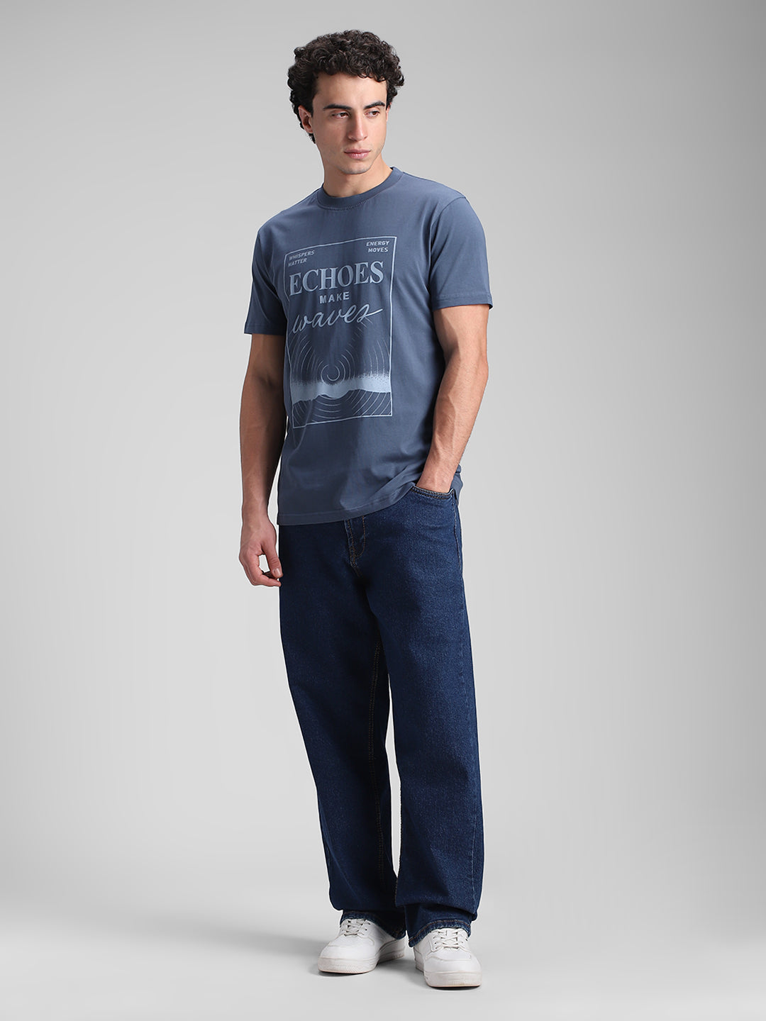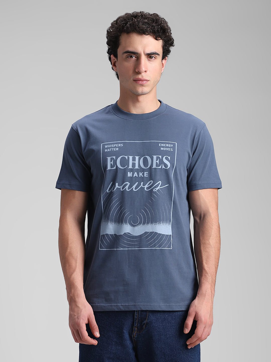 Teal Blue Printed Crew T-Shirt Sale price₹499 Regular price₹1,199