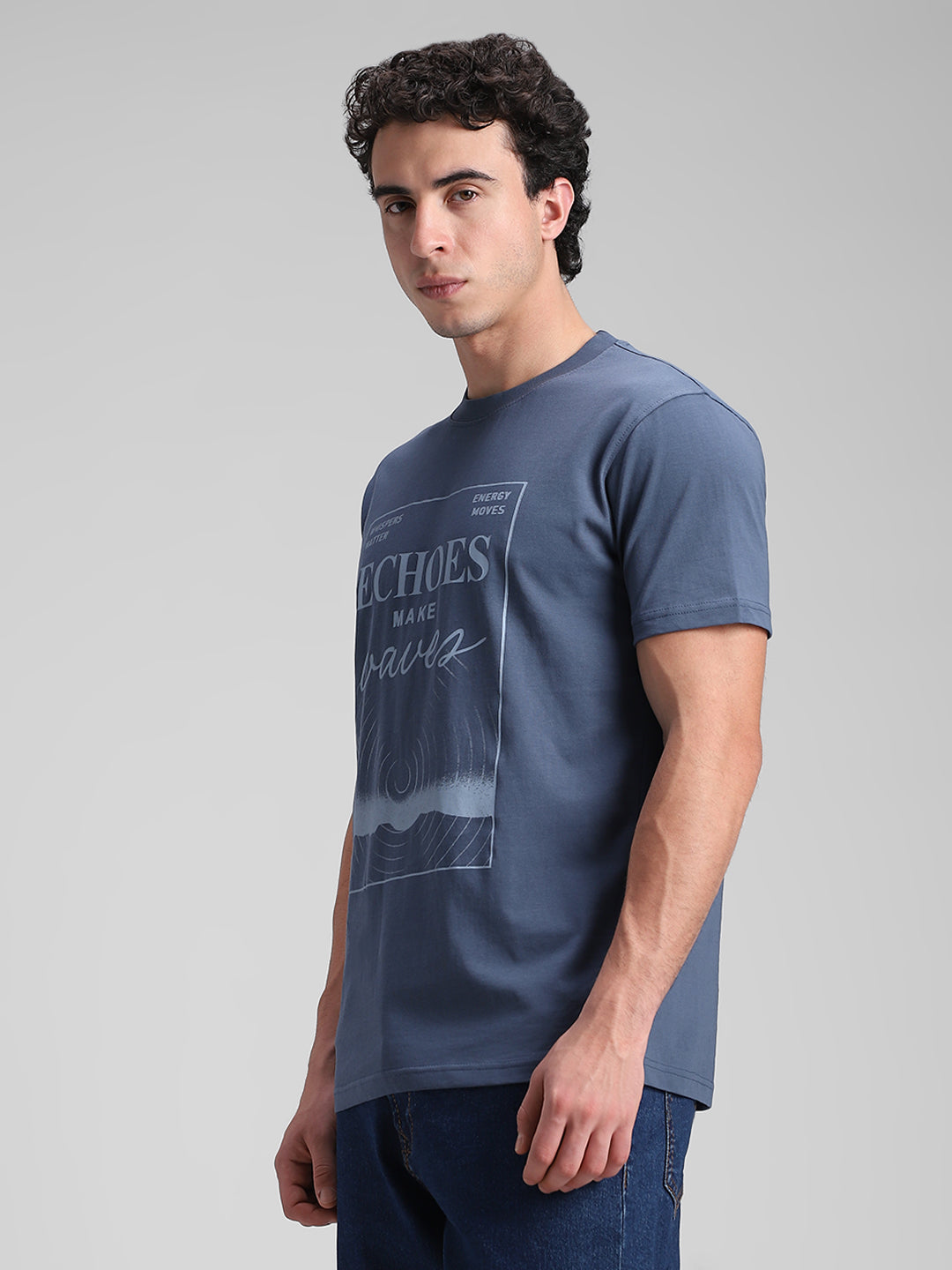Teal Blue Printed Crew T-Shirt