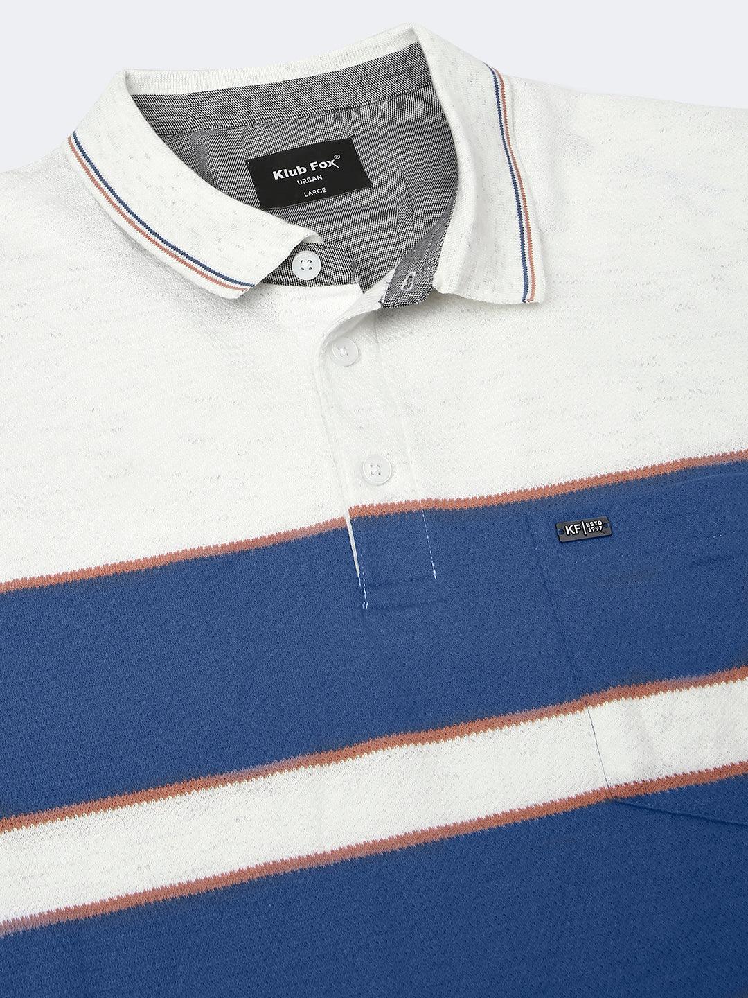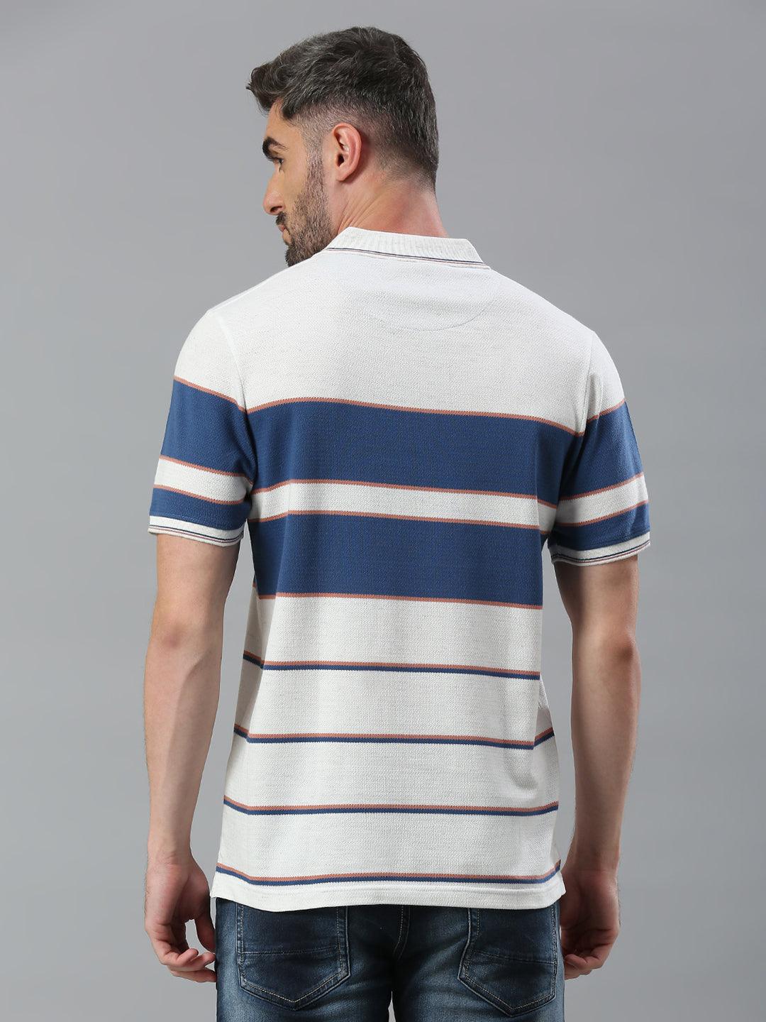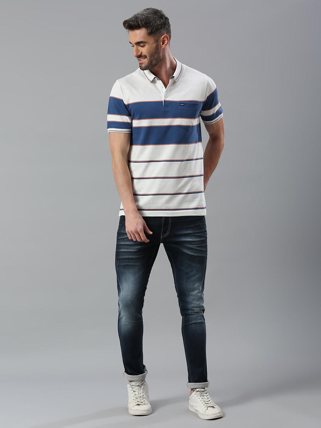 White Navy Striped Polo T-Shirt
