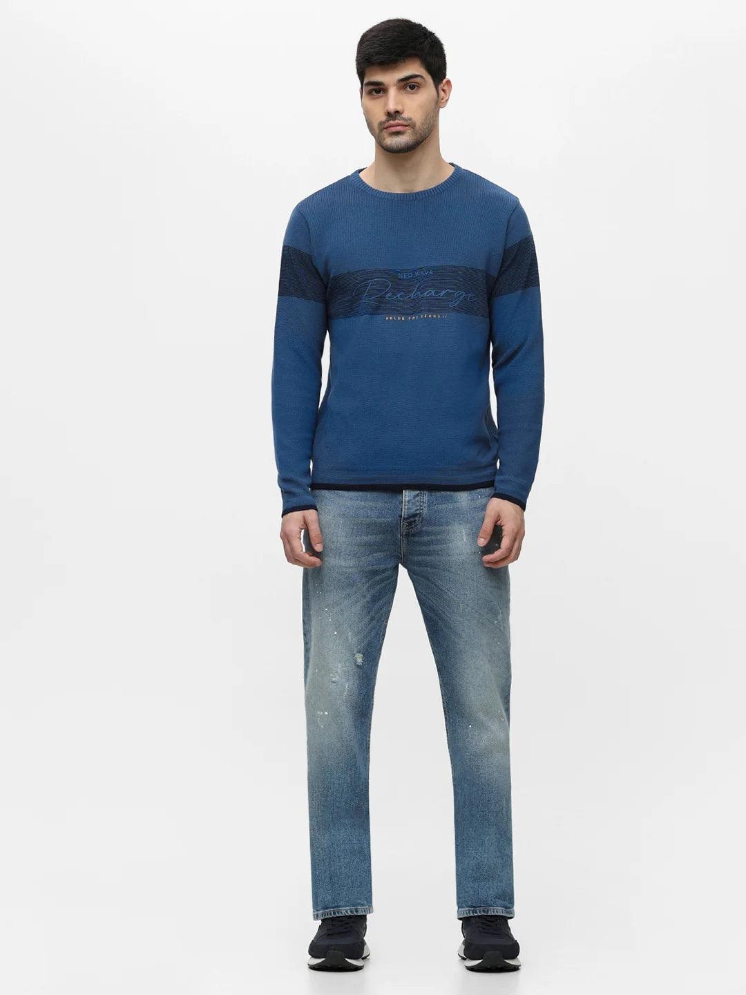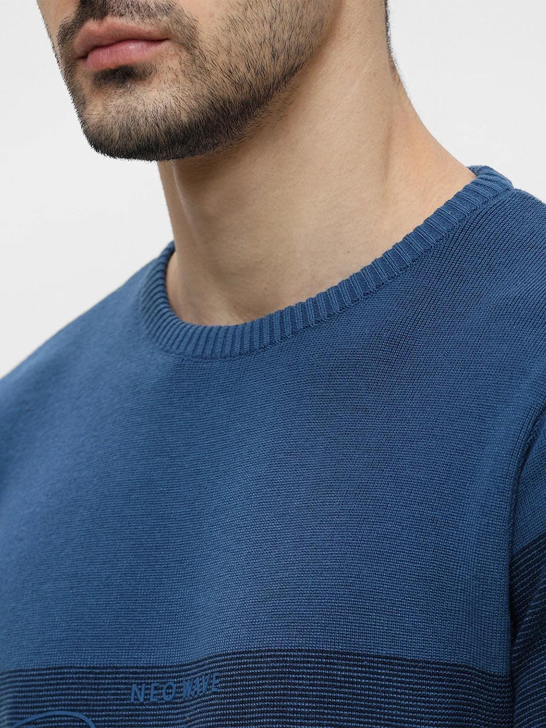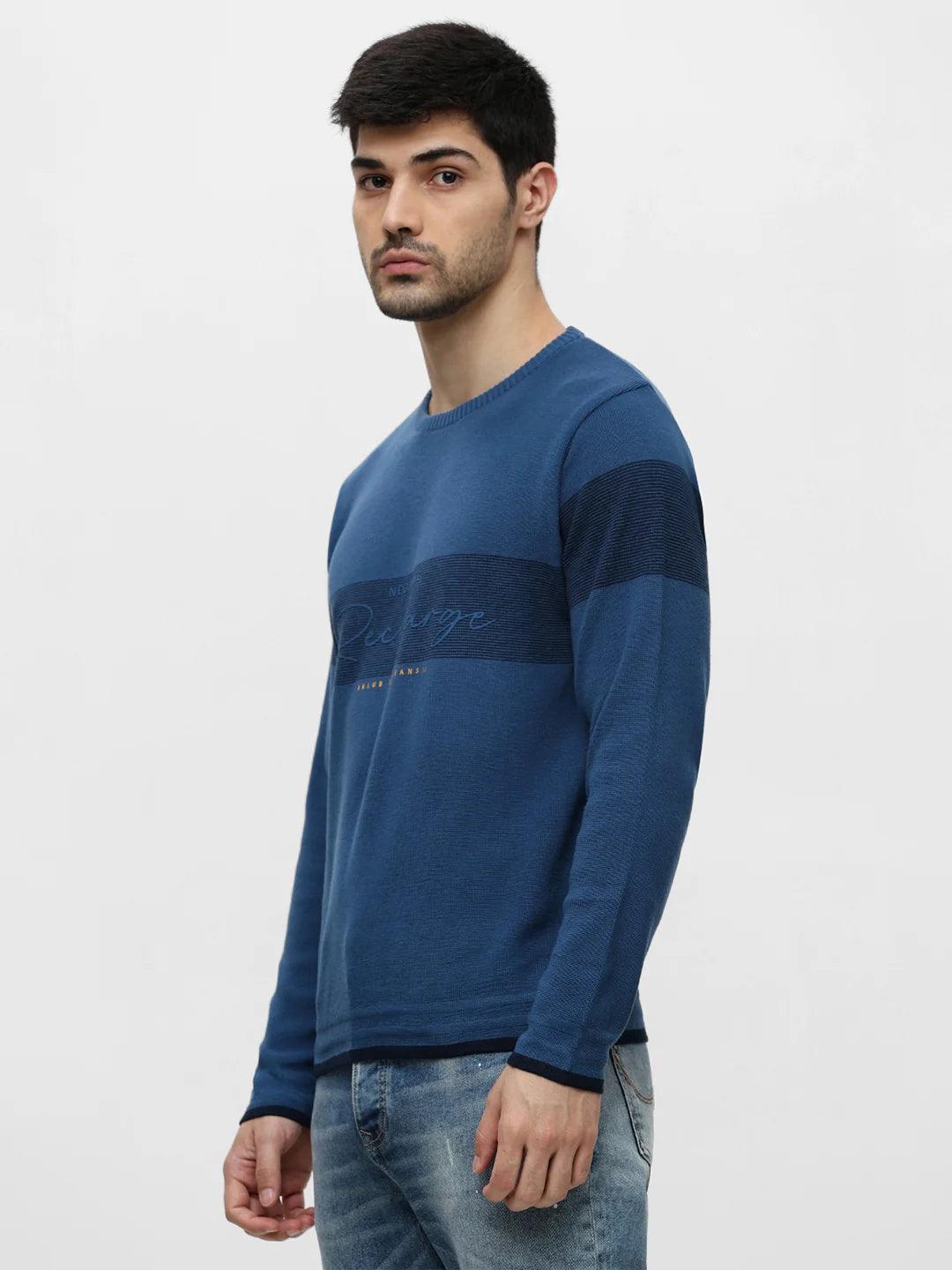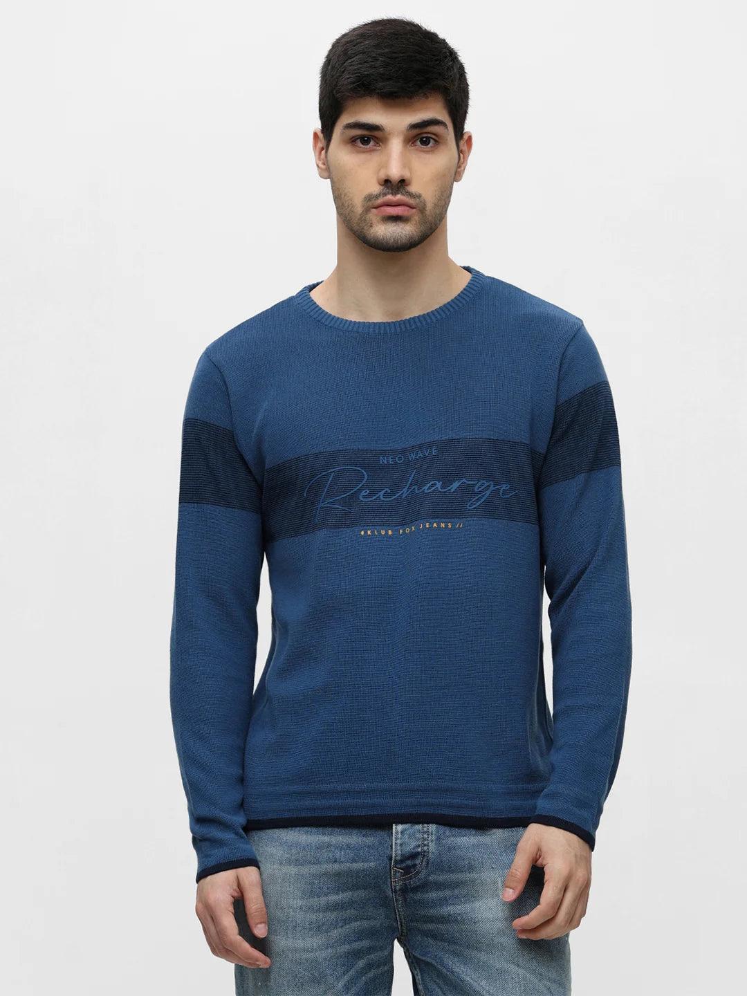 Airforce Blue Printed Sweater