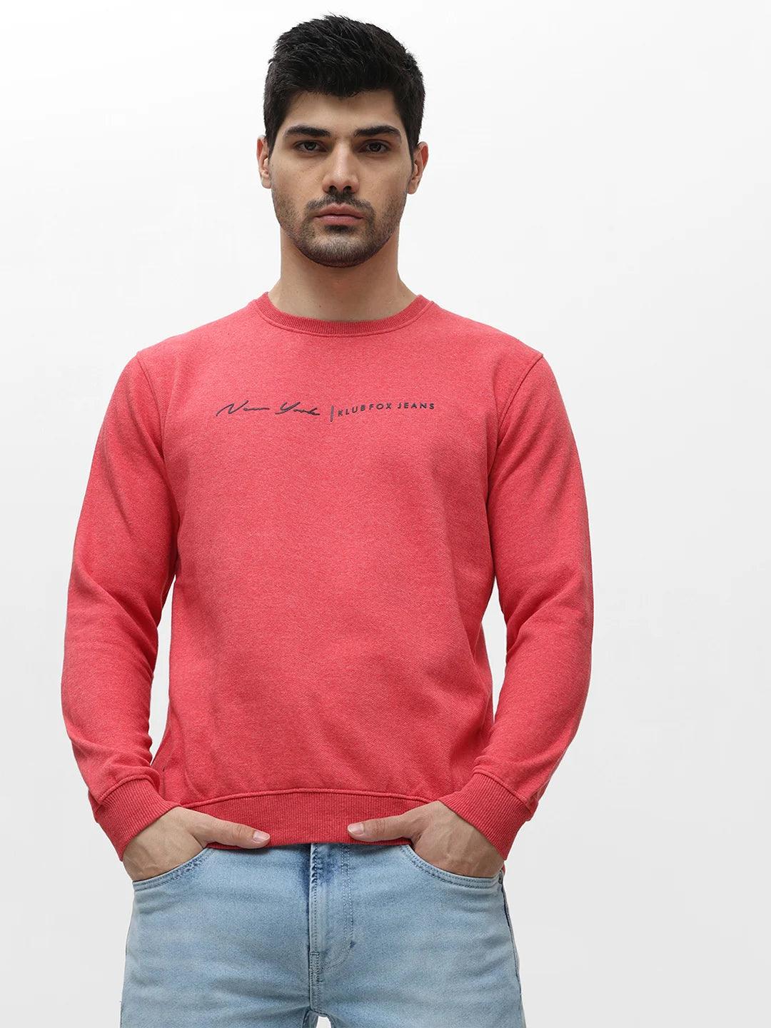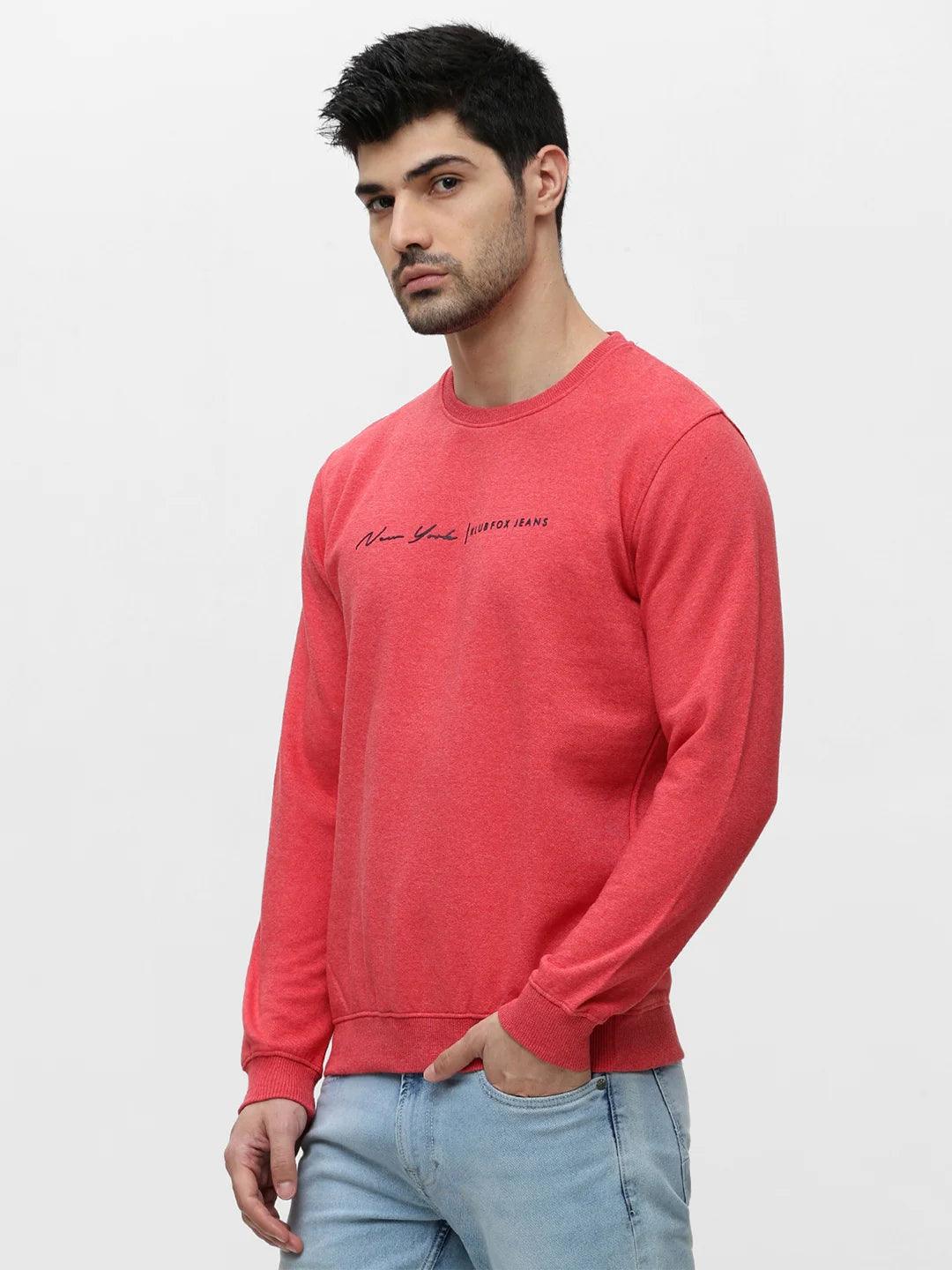 Coral Red Melange Solid Sweatshirt