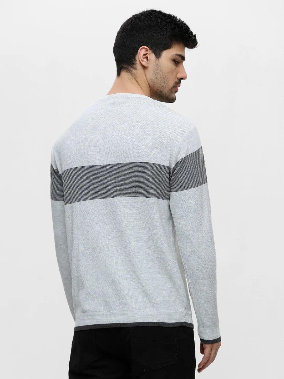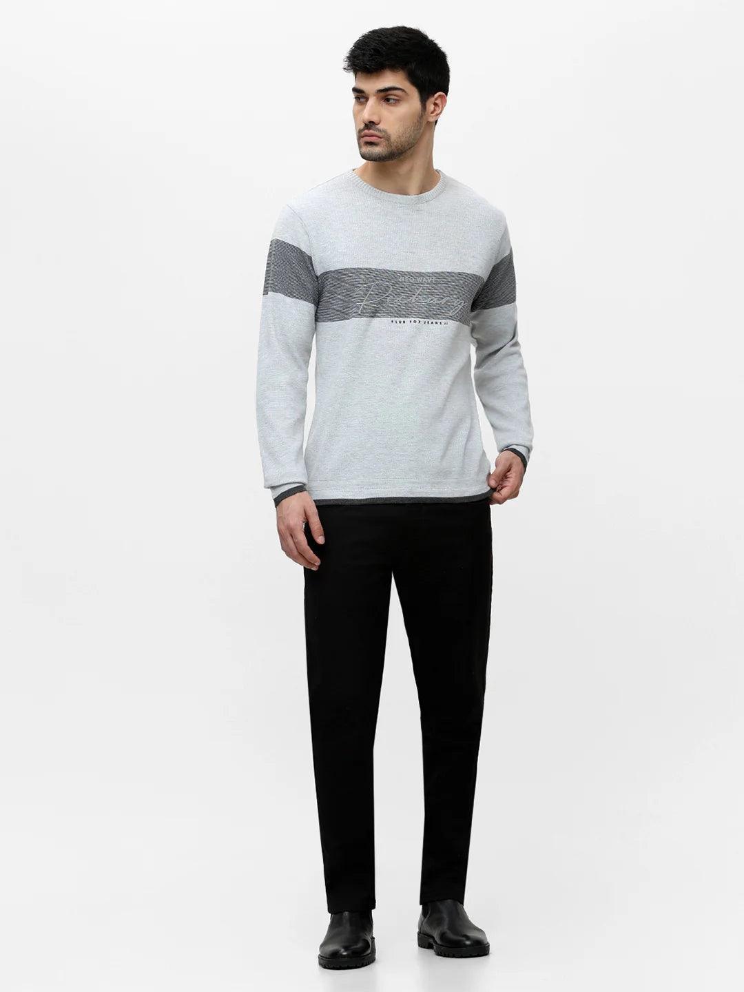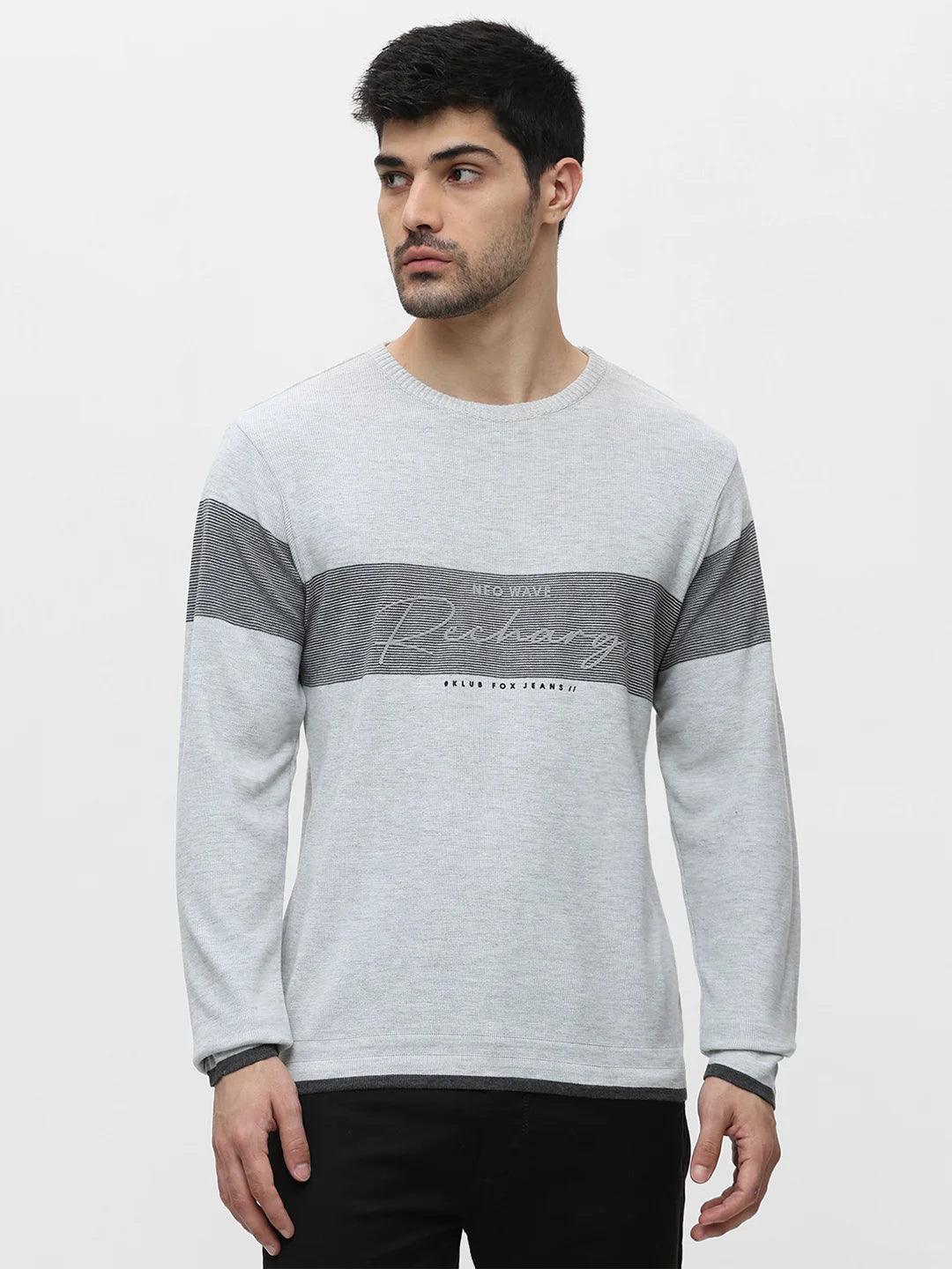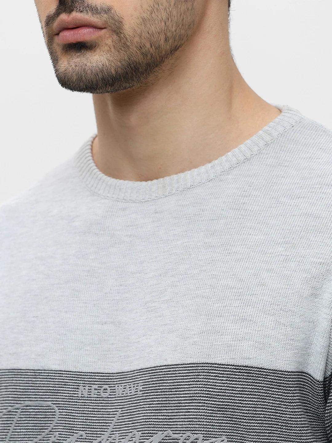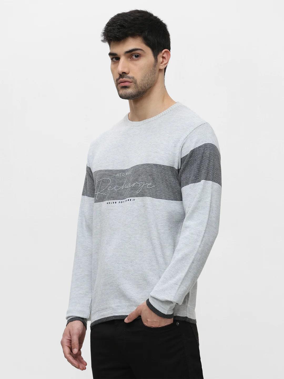 Ecru Grey Melange Printed Sweater