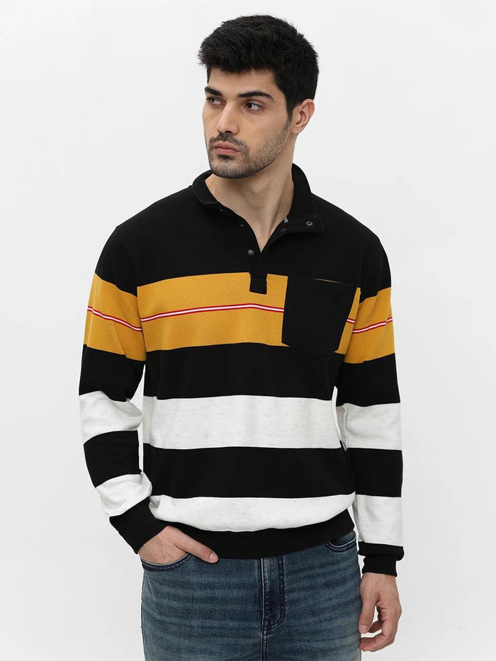 Mustard High Neck Striped Sweatshirt