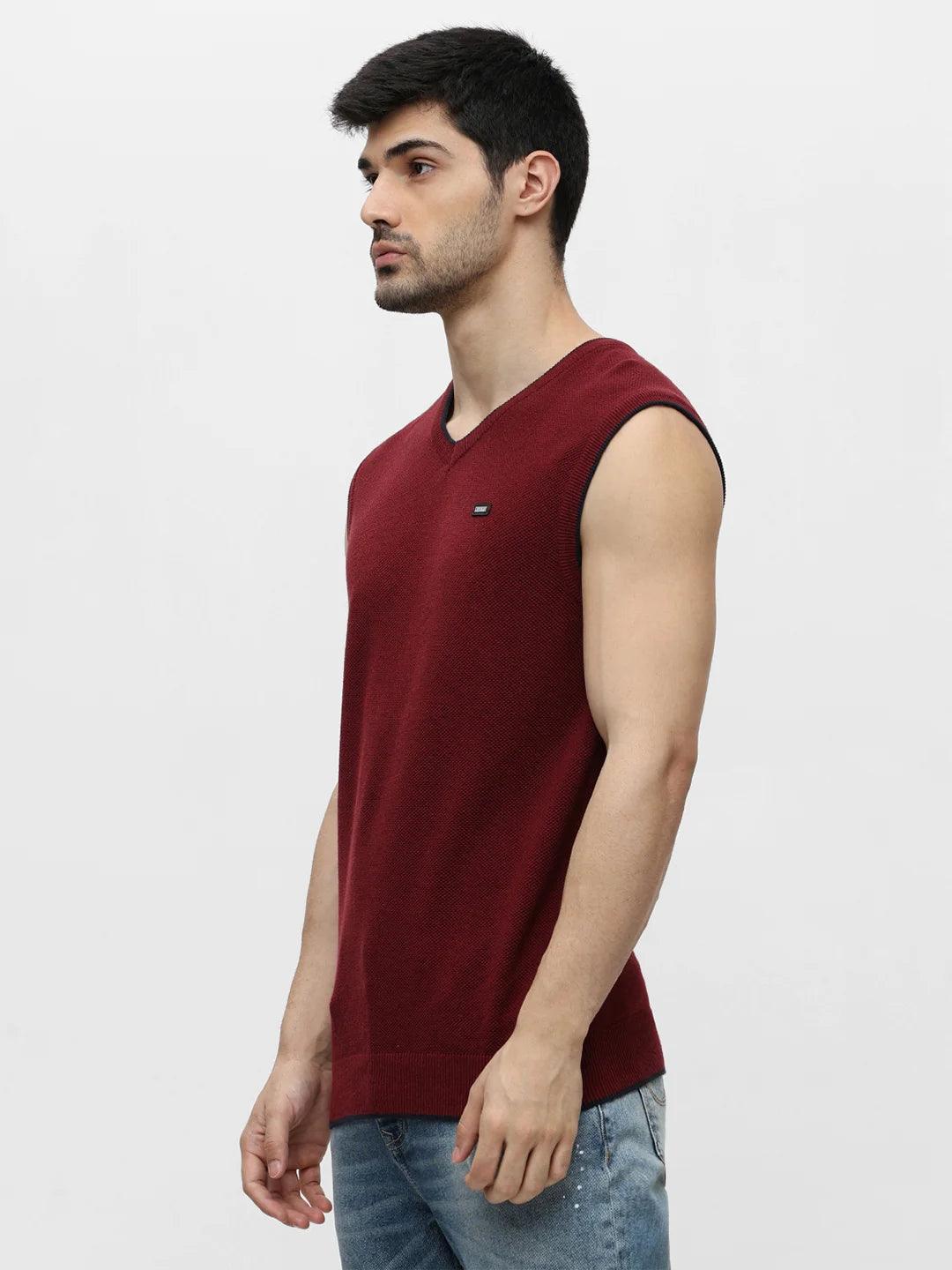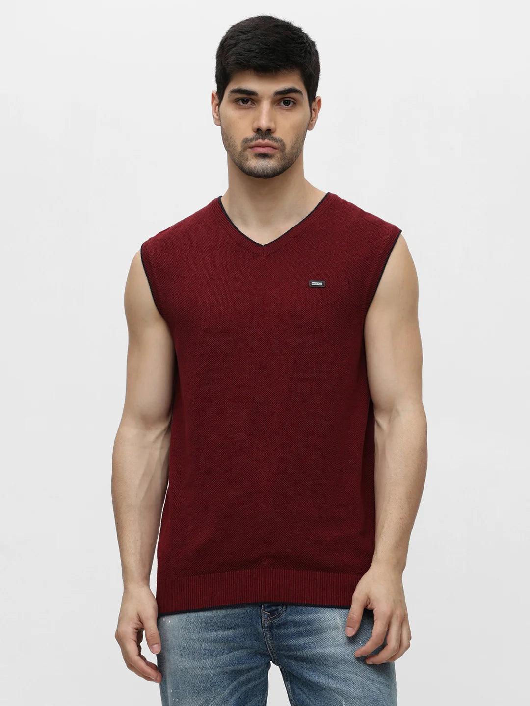 Maroon Melange Solid Sweater