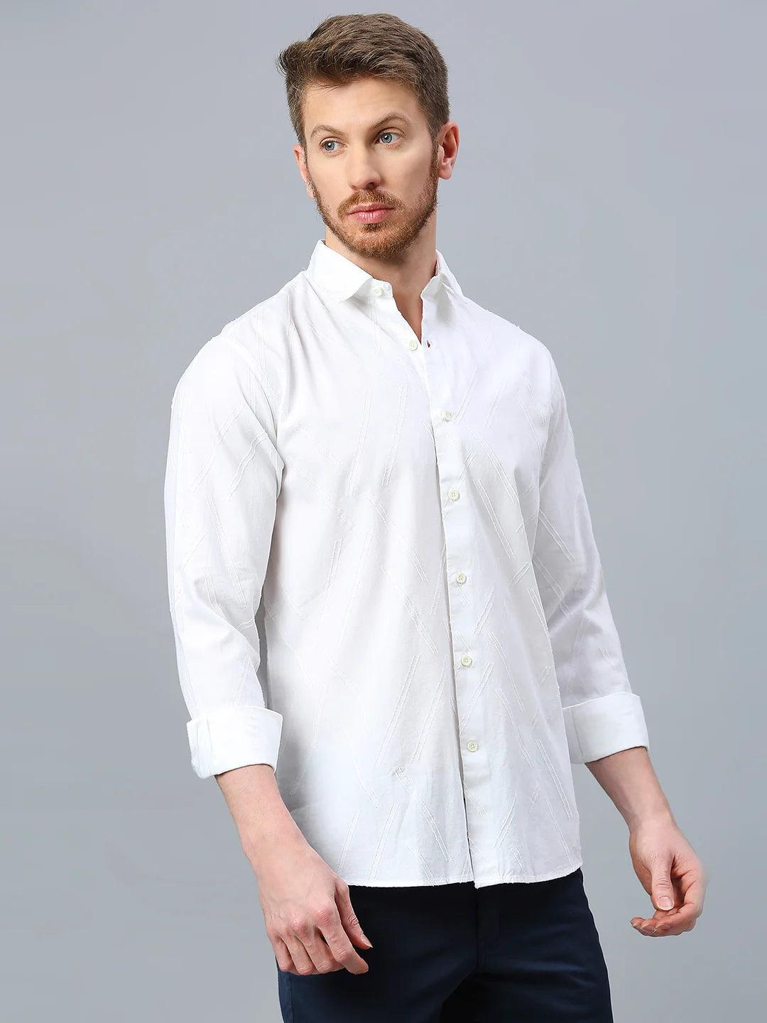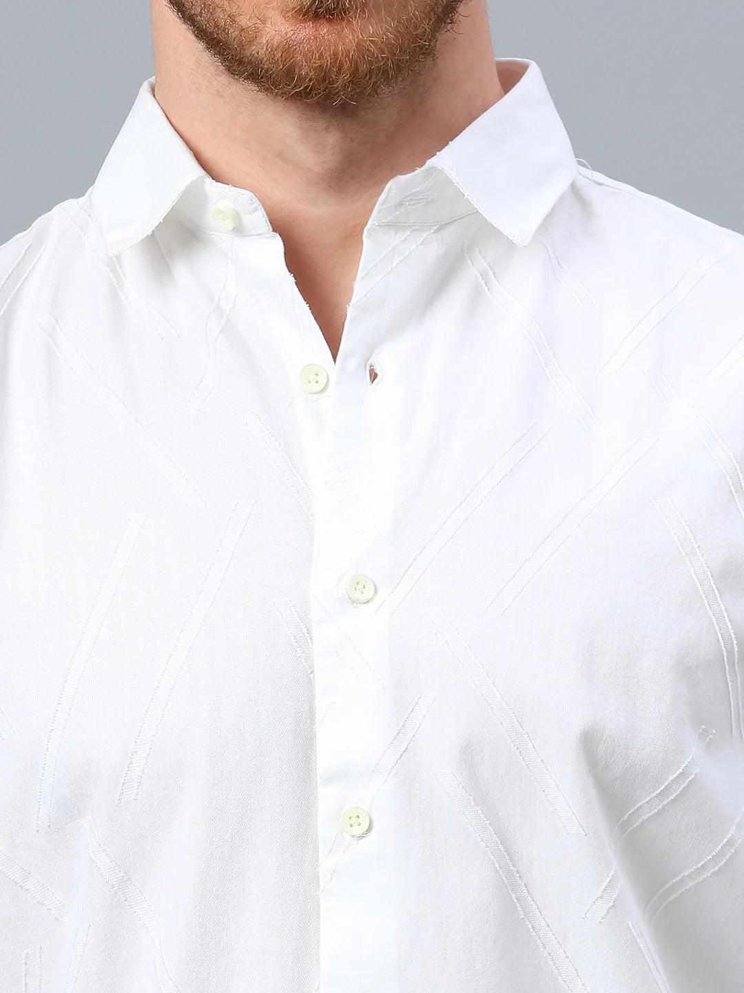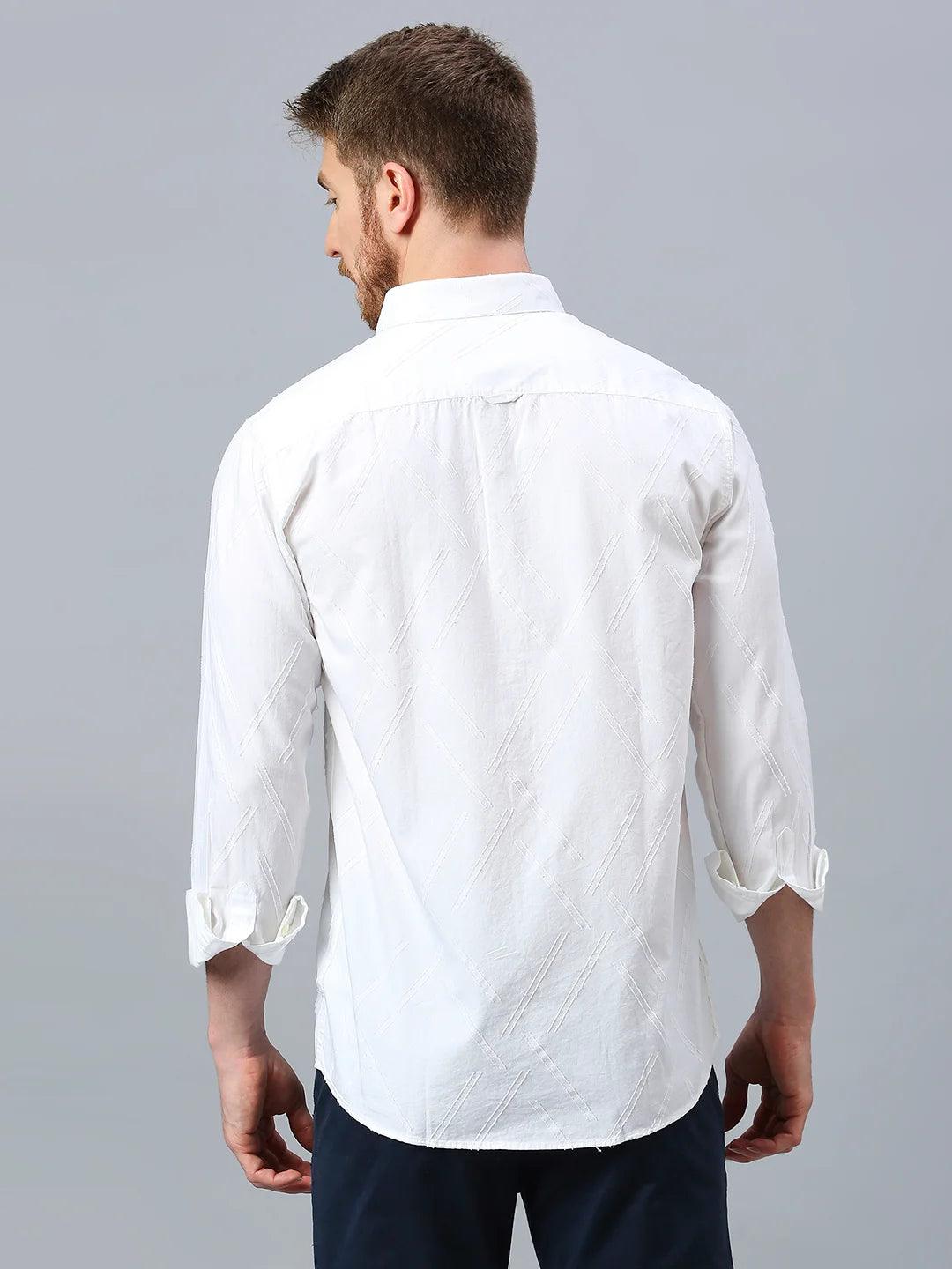 Dobby opaque casual shirt has a spread collar, French placket, long regular sleeves, curved hem.