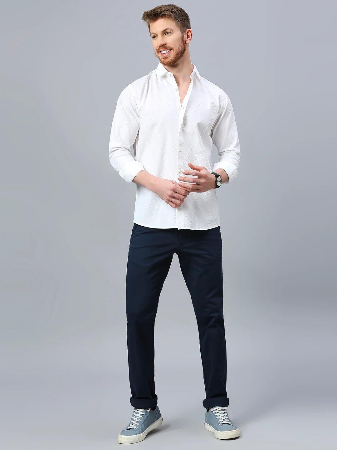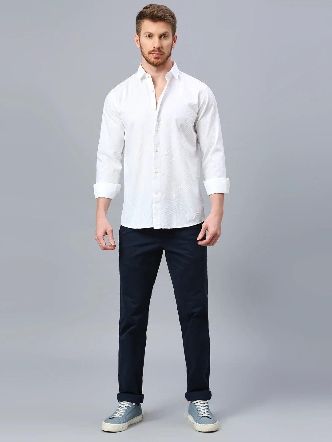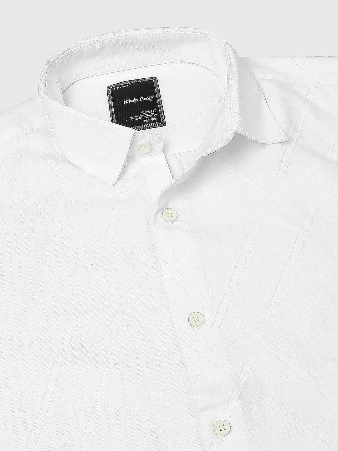 Dobby opaque casual shirt has a spread collar, French placket, long regular sleeves, curved hem.