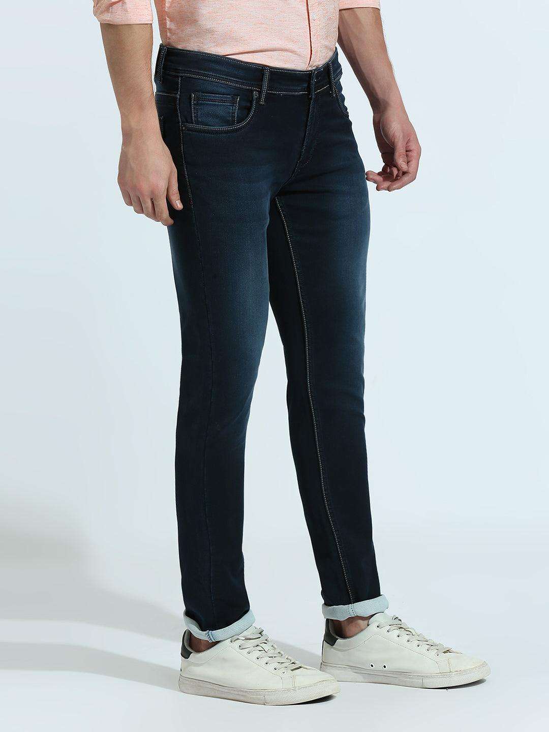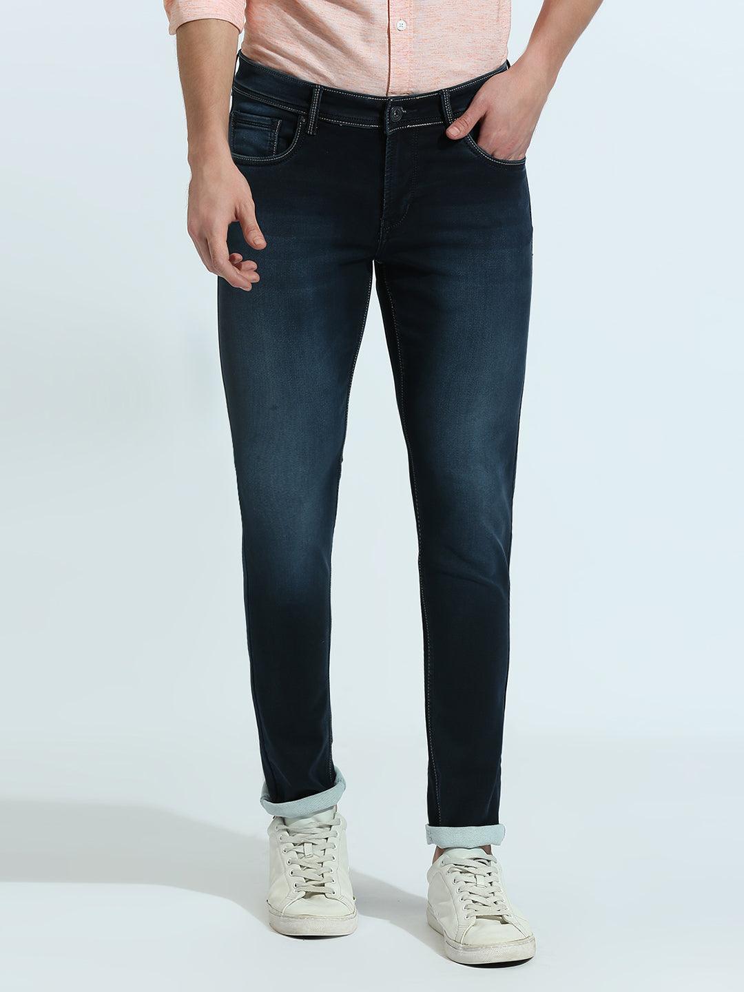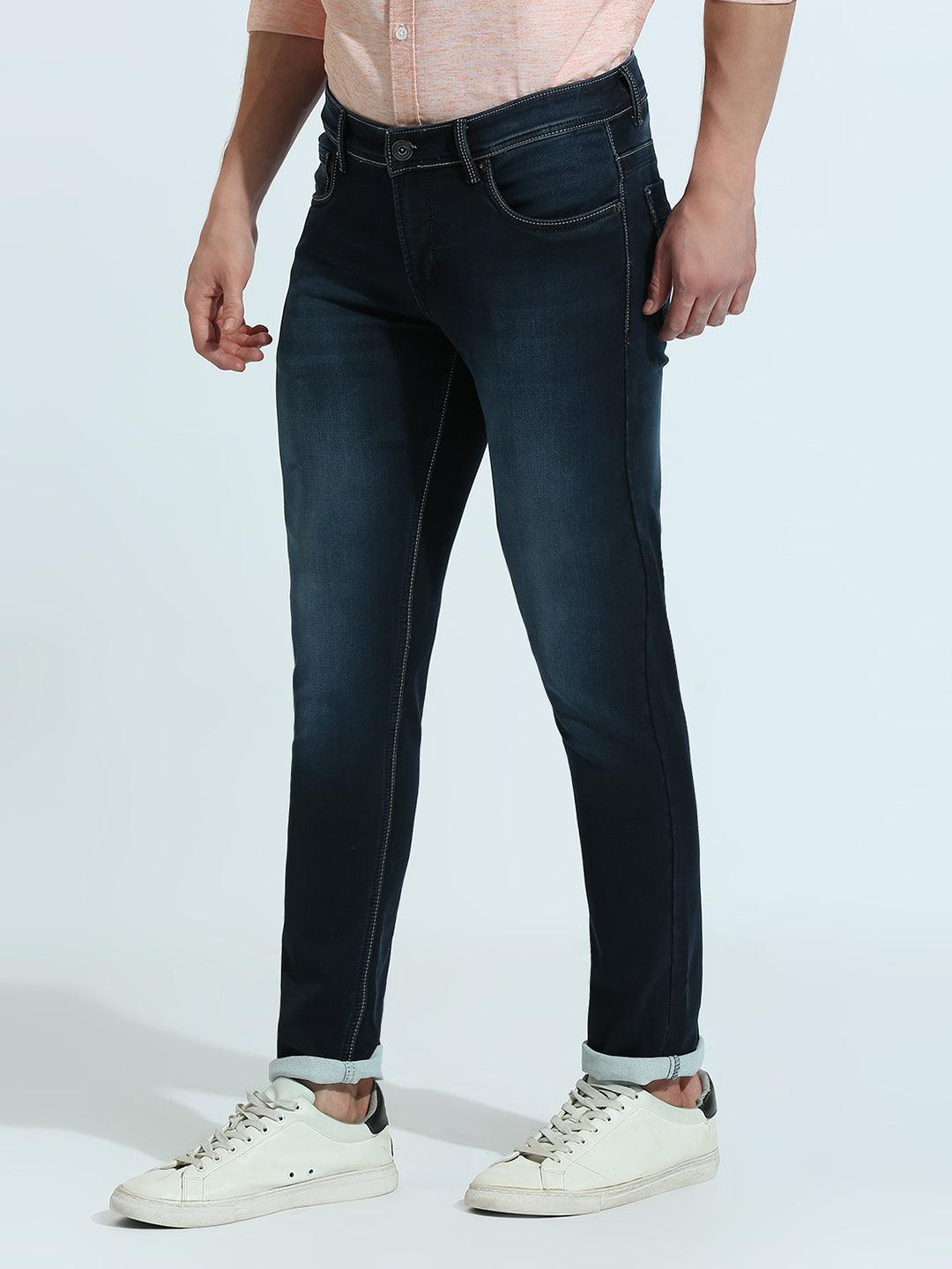 Stretchable Space Blue Shadow Fade Slim Fit Jeans