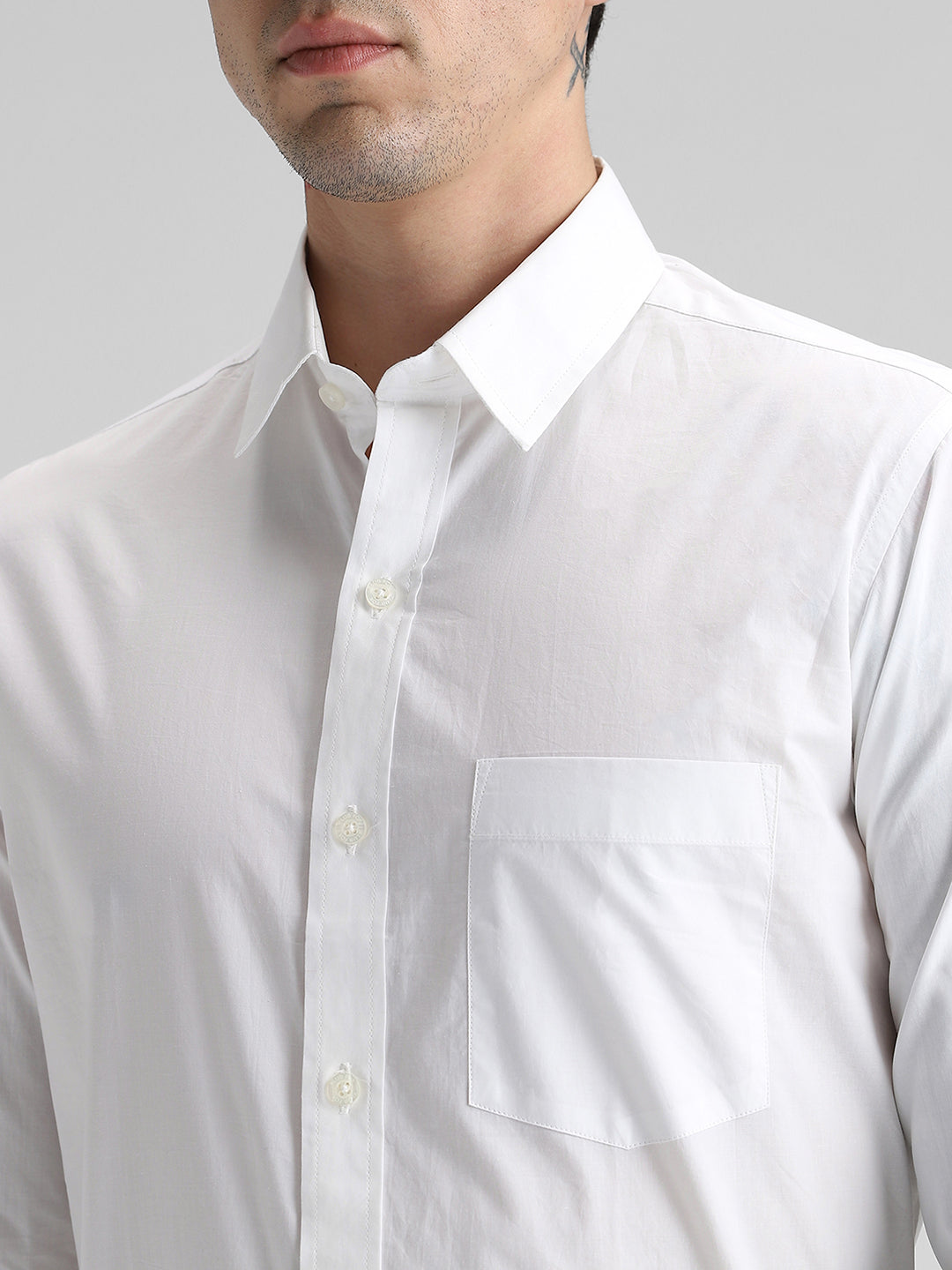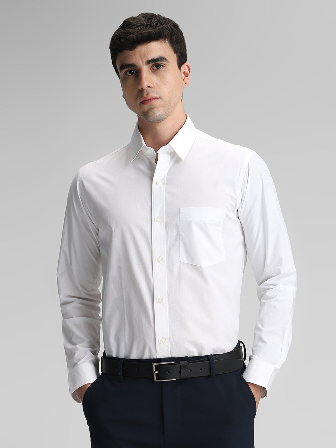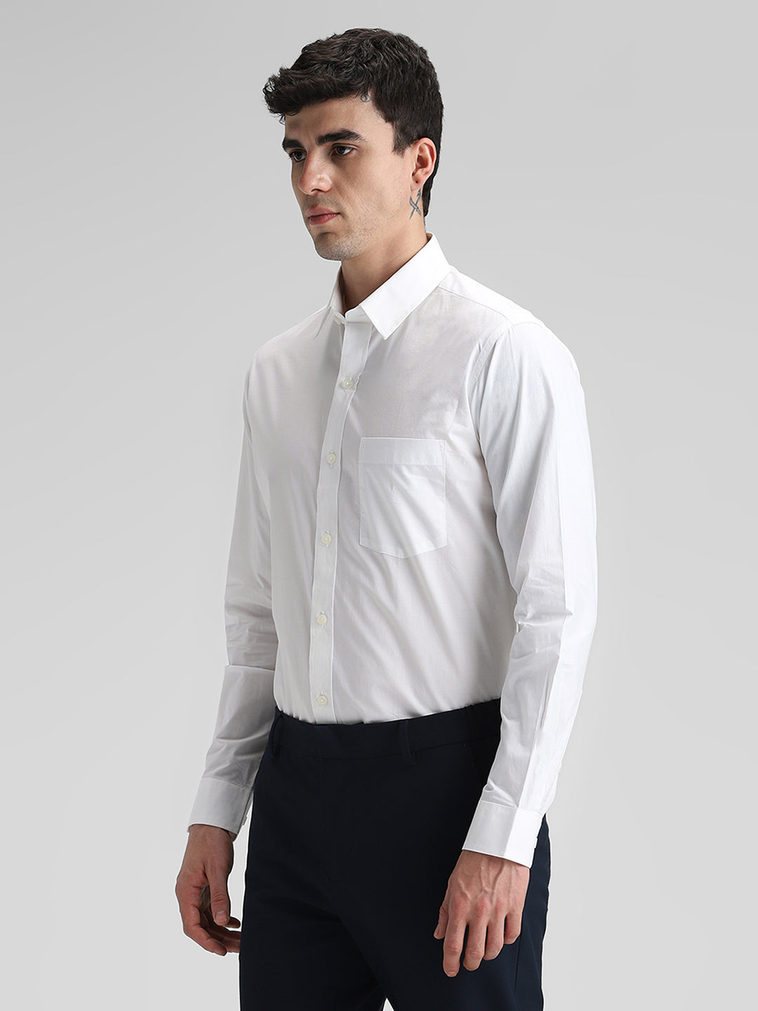 White Solid Slim Fit Shirt